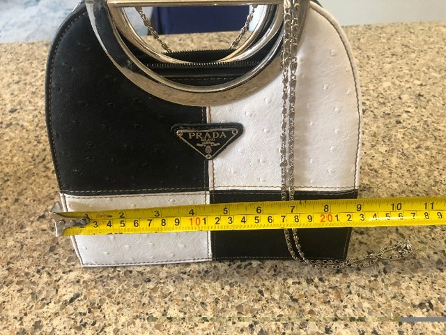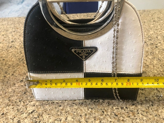 Buy & SellPrada Bag Black and WhitePrada Bag Black and White$18This beautiful evening Prada handbag with chain handle is in excellent condition. Nice for prom. Gets lots of compliments.WHERE TO MEETCheck LocationView MapSELLERSueBallantrae100 reviews0 chats·0 favorites·21 viewsSEND CHAT TO SELLERHi Sue! I’m interested in your listing.Hi Sue! I’m interested in your listing.Get the Karrot app to chatSign In to chat