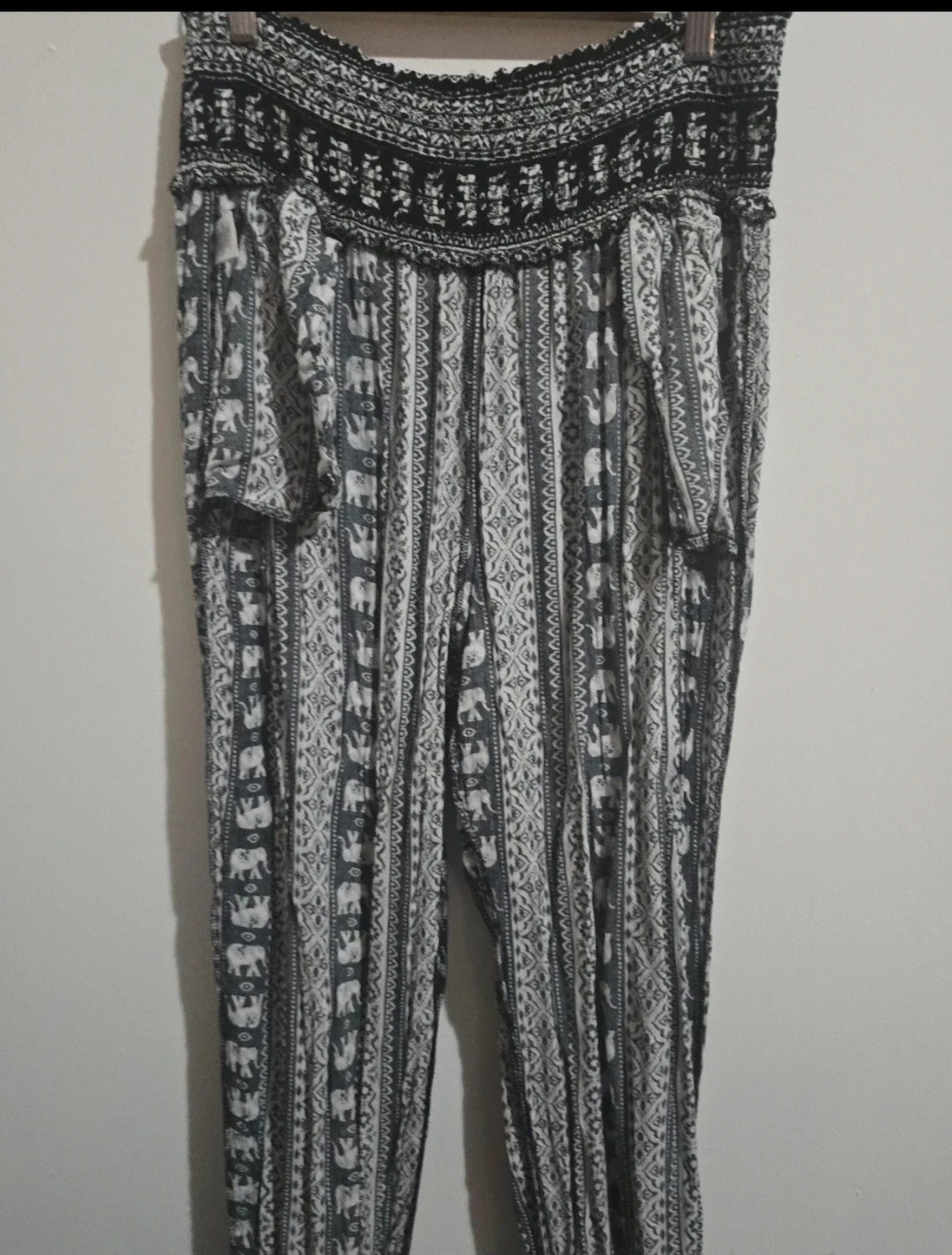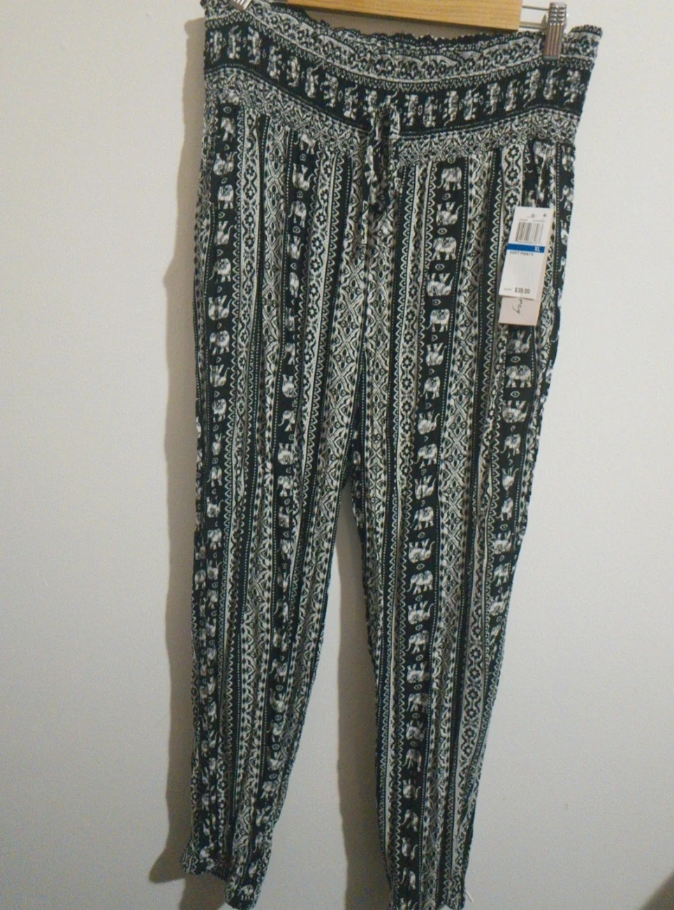 `Brand New With Tags. Kingston Grey soft pants with black and white tribal/boho pattern. Elastic waist with drawstring. Very comfortable and lightweight. Two packets in the front