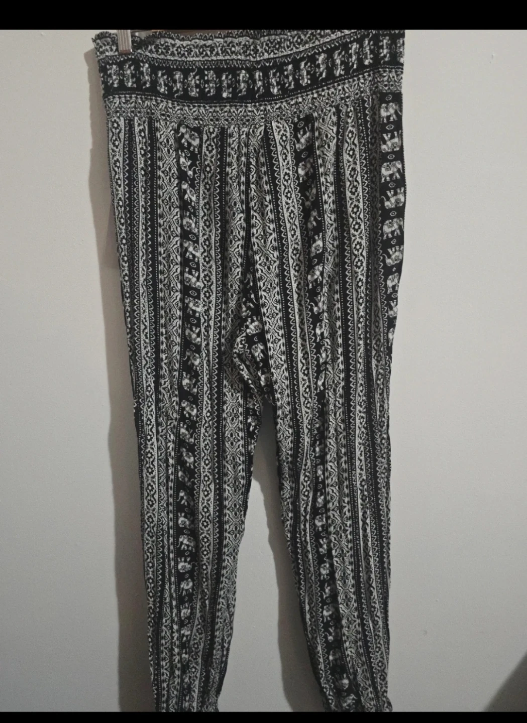 `Brand New With Tags. Kingston Grey soft pants with black and white tribal/boho pattern. Elastic waist with drawstring. Very comfortable and lightweight. Two packets in the front