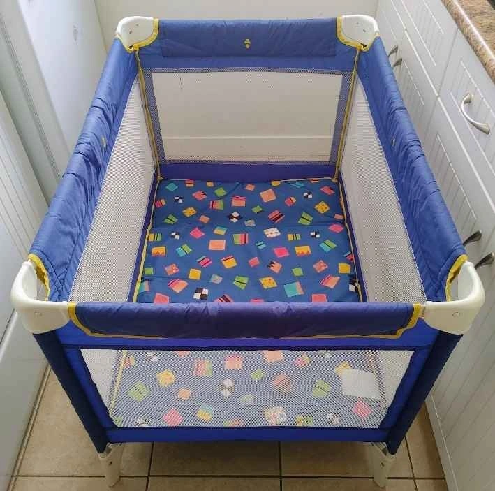 Graco Pack 'n Play. Outside dimensions: 40"x29"x29". Inside dimensions: 37"x26"x22". On the Go Playard/Daybed with Padded Mattress. Folding feet make it easy to store and perfect for travel. Just snap the 4 sides in and you are ready to go. Very easy to clean. From a smoke-free and pet-free home. Pick up only in the West End Downtown.