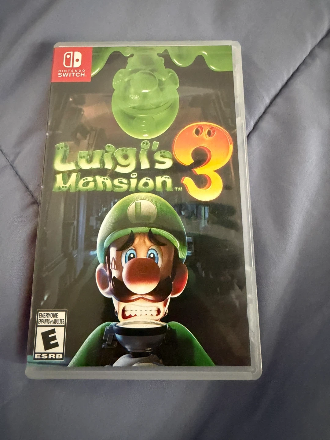 Selling Luigi's Mansion 3 for the Nintendo Switch! It's a fun game where you explore a haunted hotel and capture ghosts. Great for all ages!