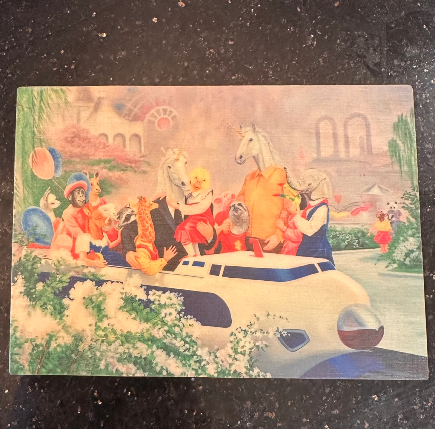 Features whimsical artwork. Animals and unicorns.