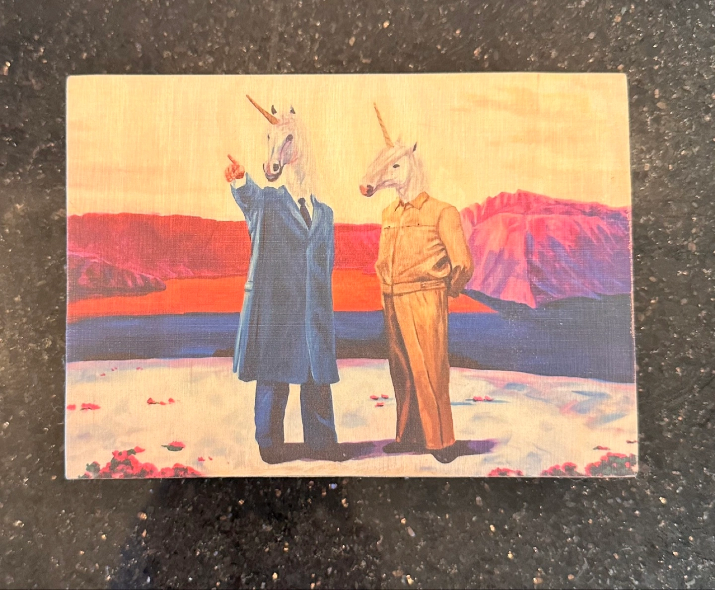 Korean leader political satire art on wood