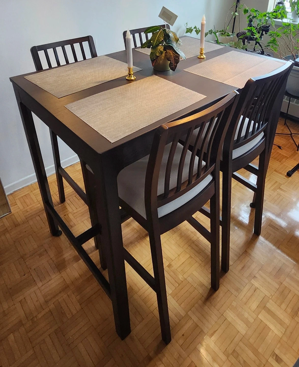 Dark Wood table Counter Height with 4 Chairs