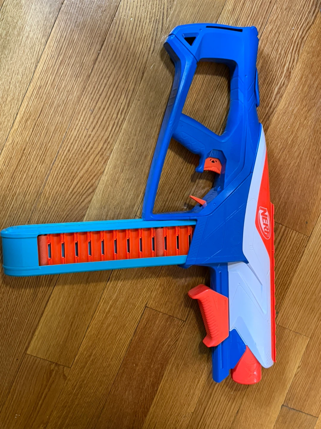 This is a Nerf 40X dart blaster. It comes with a large capacity drum magazine and 80 darts. Ready for some fun!
