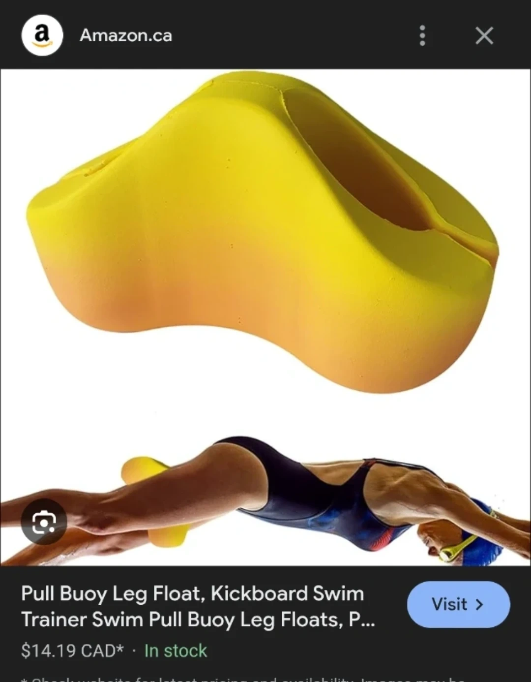 This yellow pull buoy leg float helps improve your swimming technique. It's made of EVA foam for buoyancy. This trainer is useful for leg strengthening and body positioning in the water.