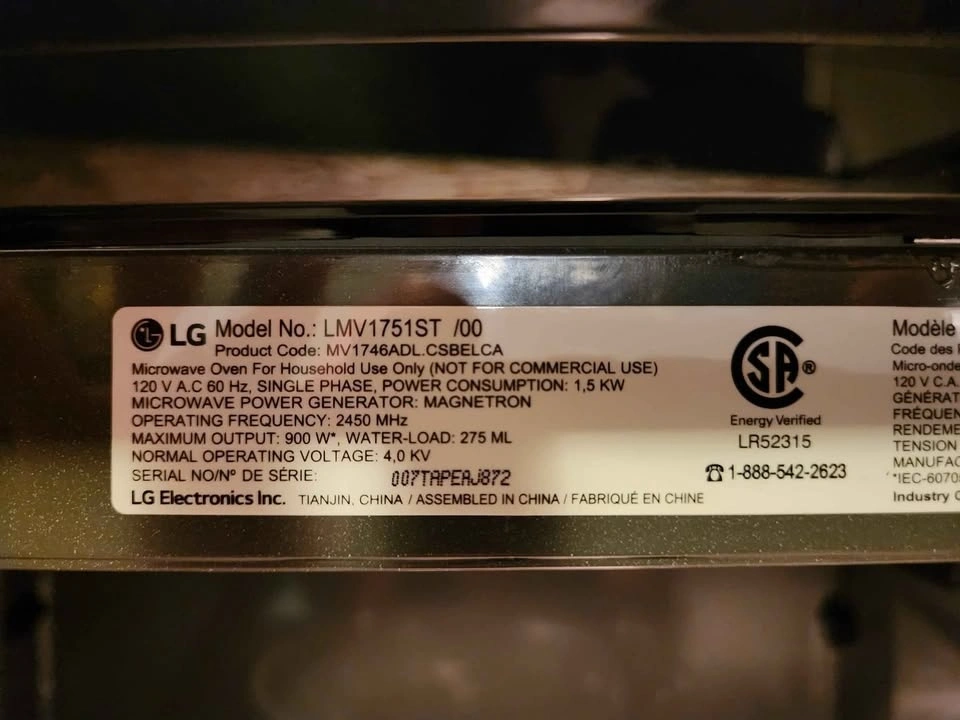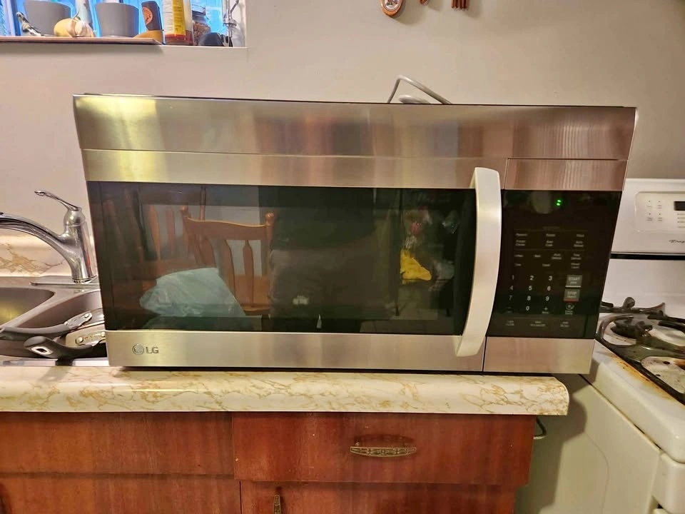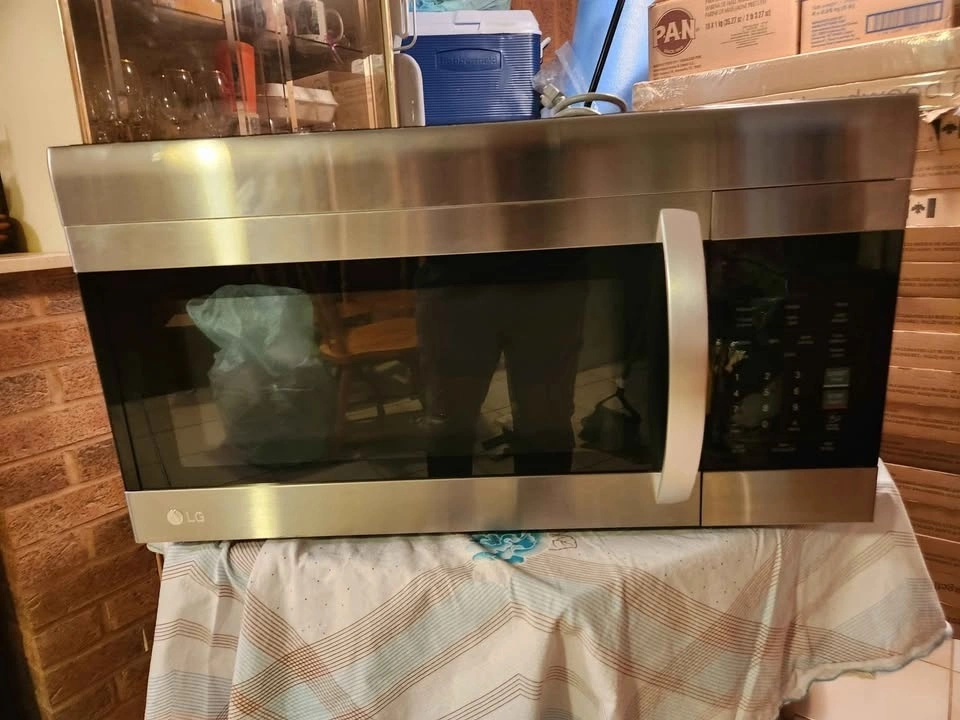 Clean, fully functional LG Over-the-Range Microwave in Stainless Steel. It’s a great unit that combines a powerful microwave with a built-in 2-speed kitchen exhaust fan.