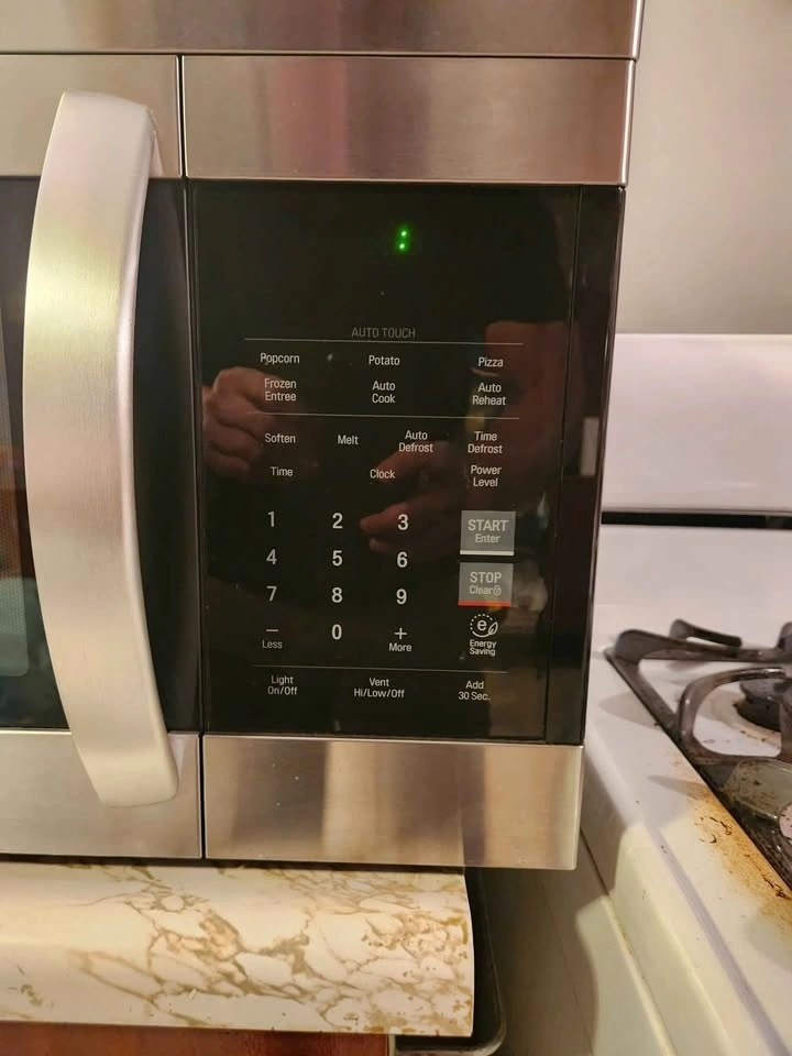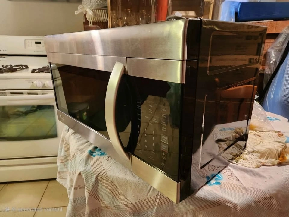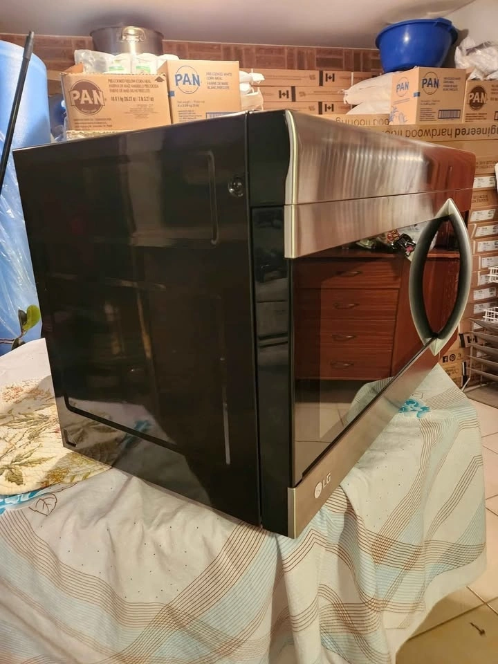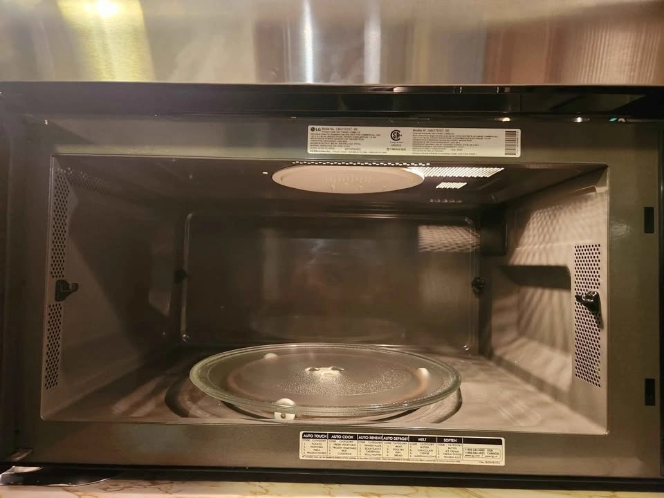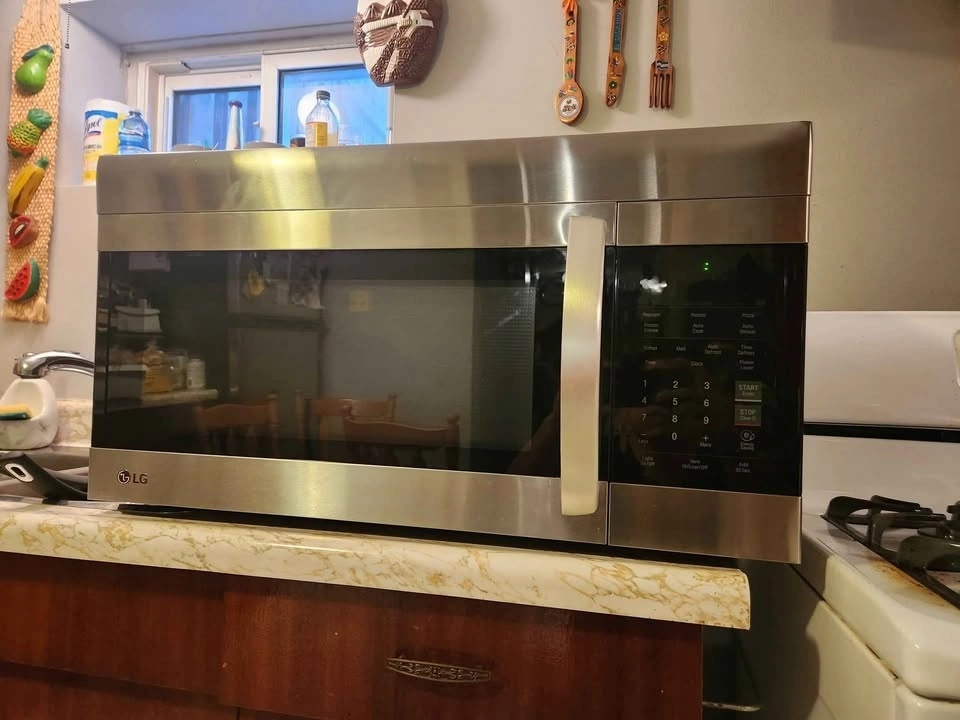 Clean, fully functional LG Over-the-Range Microwave in Stainless Steel. It’s a great unit that combines a powerful microwave with a built-in 2-speed kitchen exhaust fan.