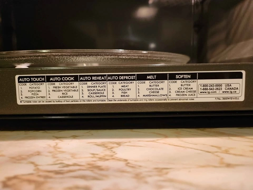Auto Cook Options: 8 (Popcorn, Potato, Pizza, Frozen Entree, Fresh Vegetable, Frozen Vegetable, Rice, Casserole)