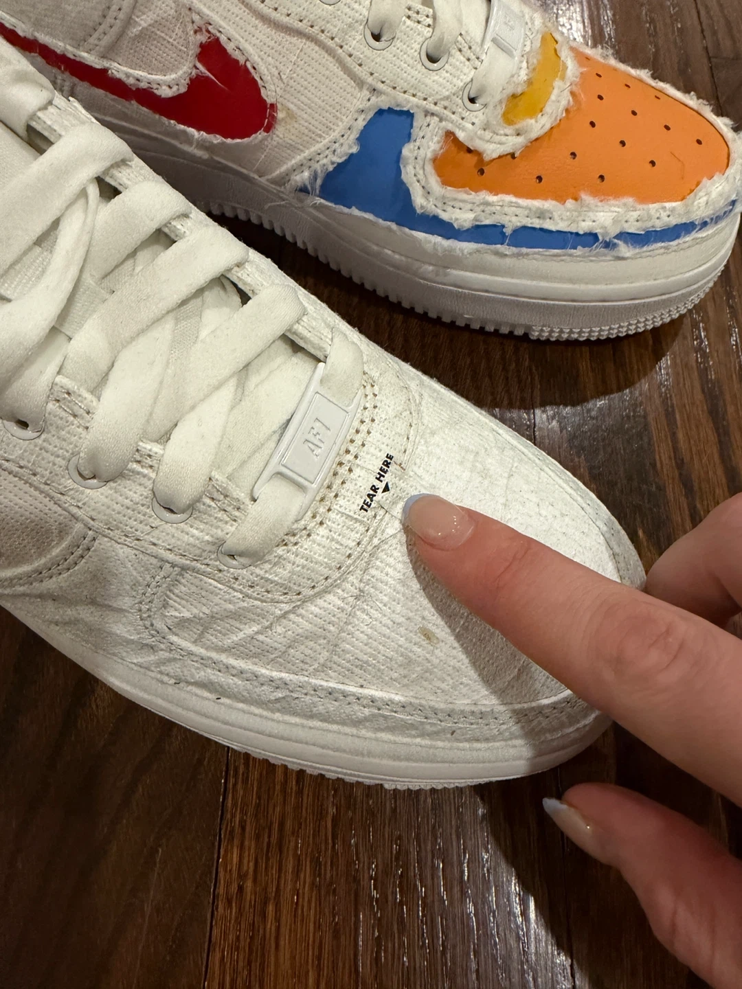 These kicks are made with a canvas-like material, which is meant to be peeled off exposing the colour underneath. They're perfect for anyone looking for a unique and eye-catching pair of sneakers!