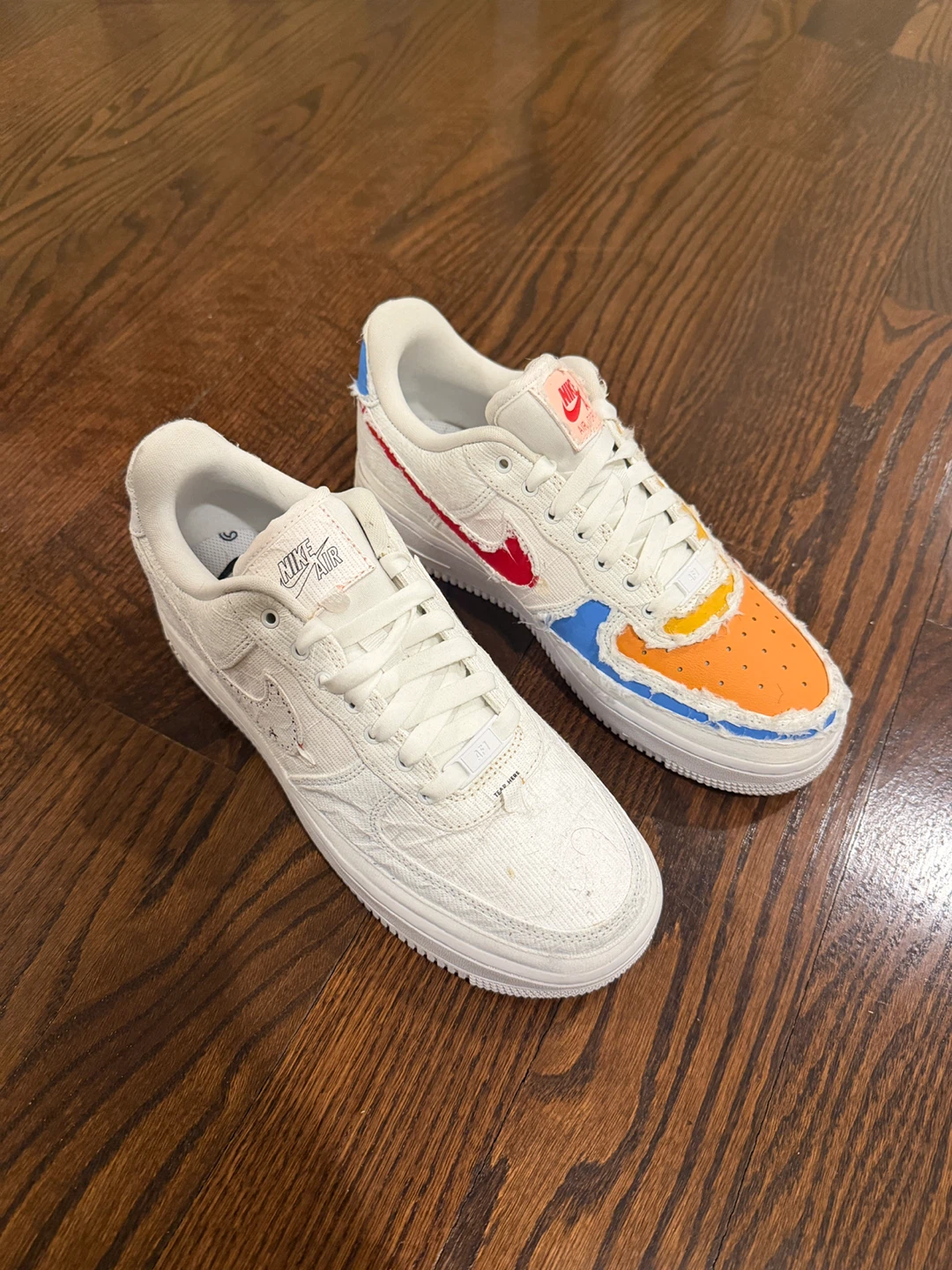 These kicks are made with a canvas-like material, which is meant to be peeled off exposing the colour underneath. They're perfect for anyone looking for a unique and eye-catching pair of sneakers!