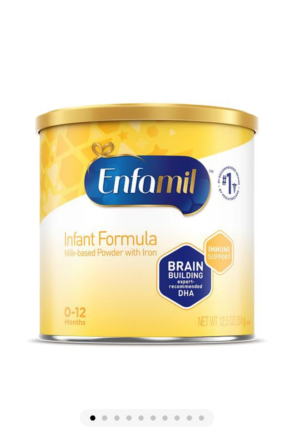 Selling a can of Enfamil Infant Formula, perfect for little ones aged 0-12 months! It's milk-based powder with iron and includes DHA for brain building and immune support. Net weight is 12.5 oz.i have 8 cans