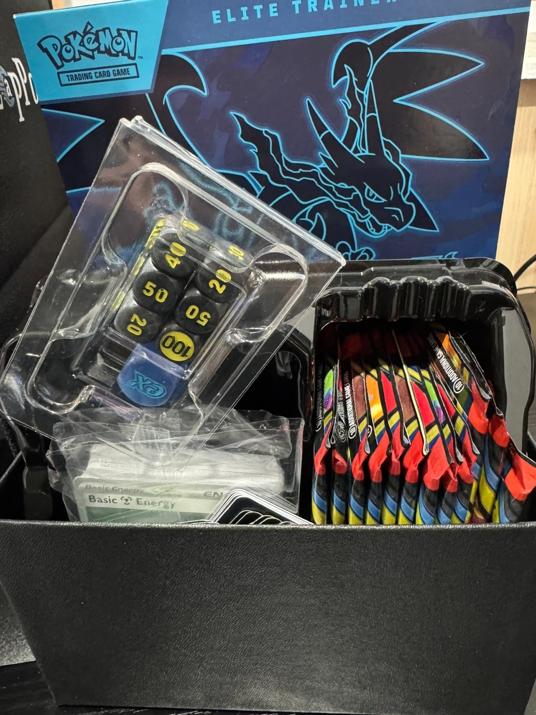Selling all my pokemon collection /bulk which is barely bulk just a collection from multiple sets a TON of holos this is a great collection to add to yours or for your kids to play the game and have fun and not destroy the really good stuff !!! Willing to workout deals and trades depending shoot me offers This is a Pokemon Trading Card Game Elite Trainer Box. It contains trading cards, dice, and energy cards. packaging.