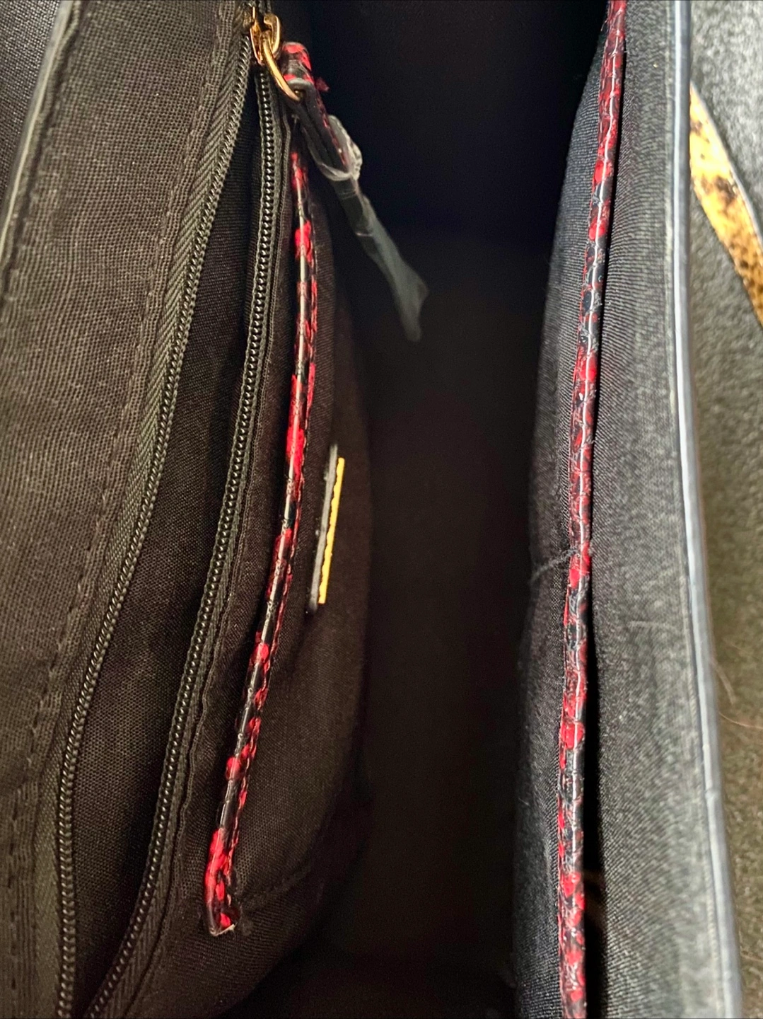 ALDO handbag with a snakeskin pattern. The bag is a mix of colours, with a gold clasp, chain, and other gold details