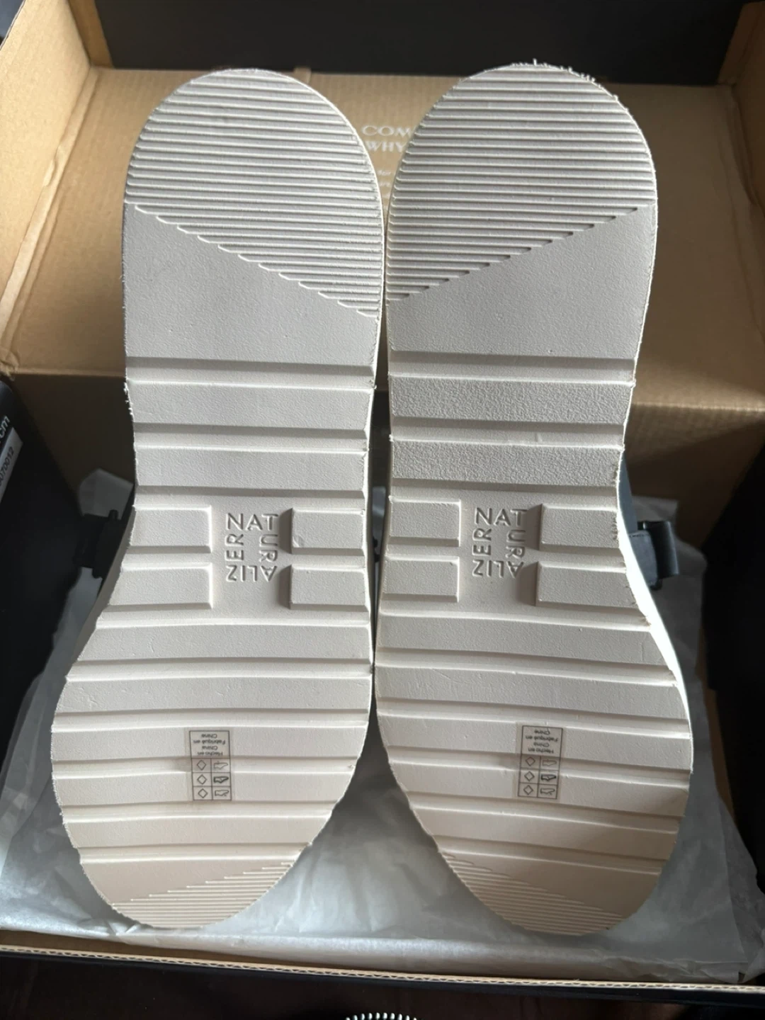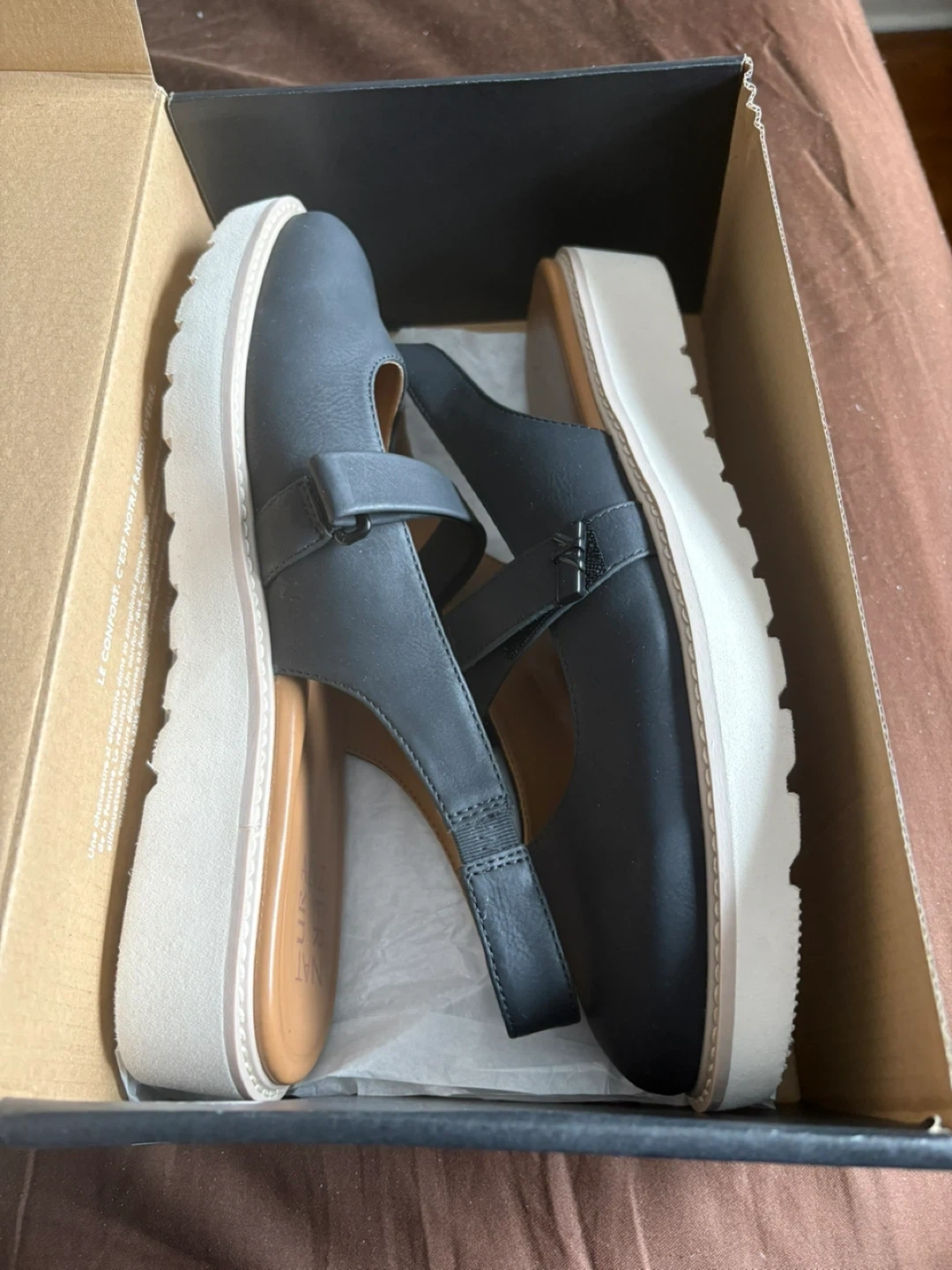 These Brand New Naturalizer slingback shoes are black with a platform sole. They feature an adjustable ankle strap. Genuine leather upper.