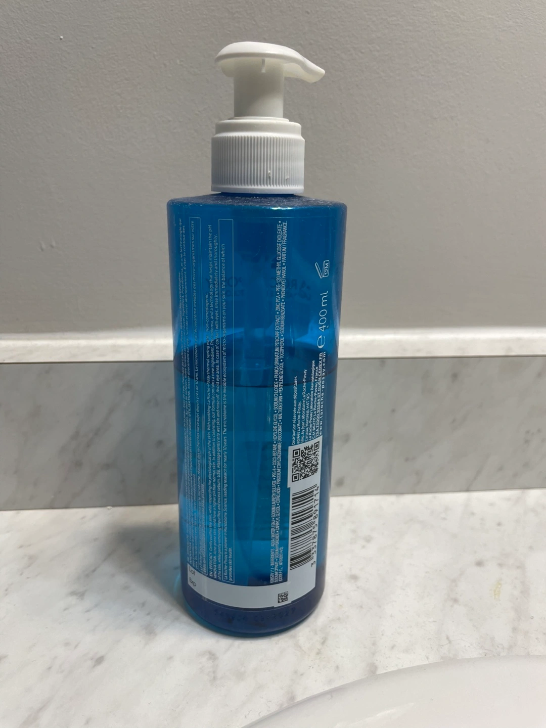 La Roche-Posay Effaclar purifying foaming gel cleanser for oily and acne-prone skin. It balances skin pH and is tested on oily acne-prone skin. 400 ml bottle. Made in France.