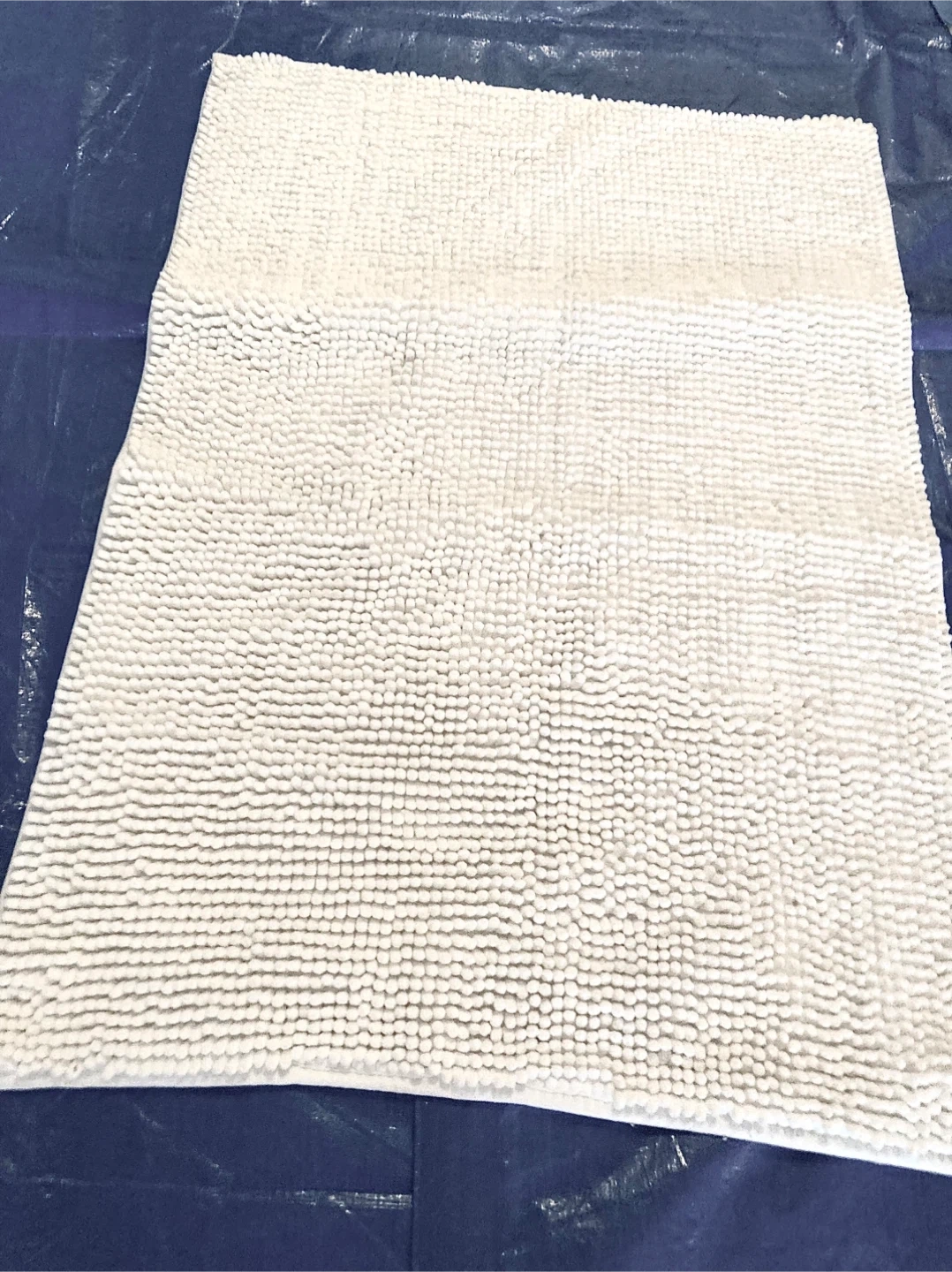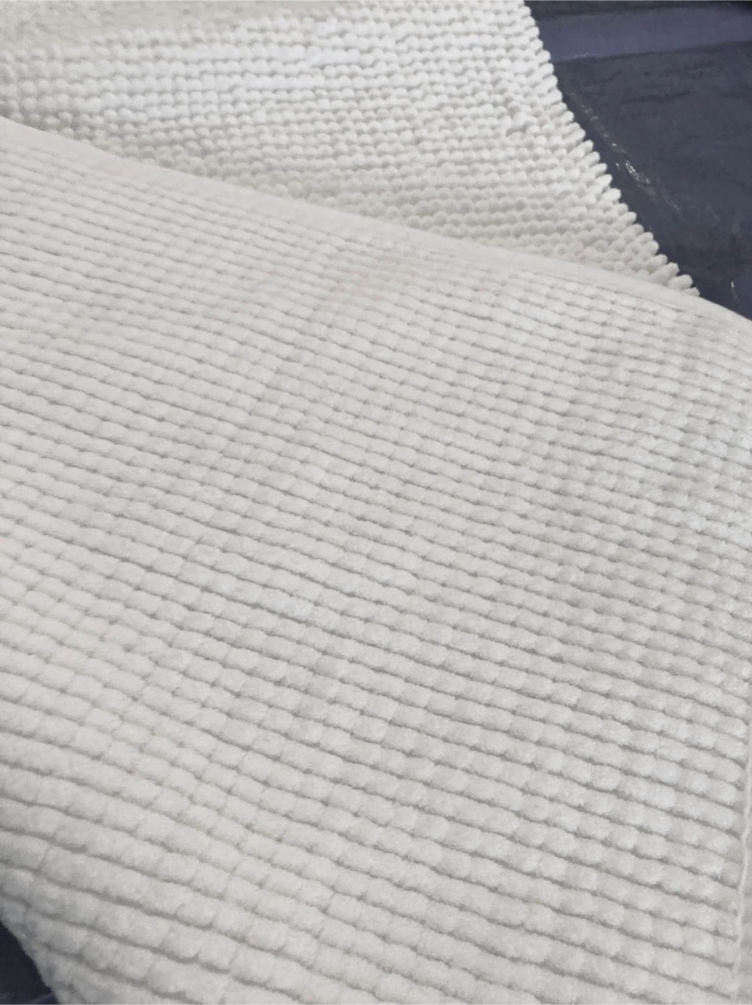Selling a chenille white bath mat. Super soft water absorbent. It's in good condition and ready to add some comfort to your bathroom! Its snow white not beige as the picture doesn’t show the right color.