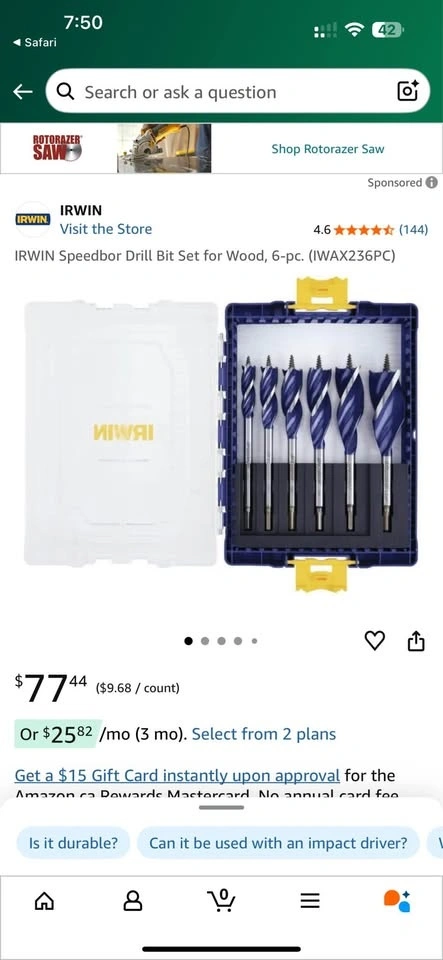 Buy & SellIrwin Speedbor Drill Bit Set - 6pcsIrwin Speedbor Drill Bit Set - 6pcs$35Pickup by highway 7 & wardenWHERE TO MEETCheck LocationView MapSELLERAndrewDowntown Markham150 reviews0 chats·0 favorites·7 viewsSEND CHAT TO SELLERHi Andrew! I’m interested in your listing.Hi Andrew! I’m interested in your listing.Get the Karrot app to chatSign In to chat
