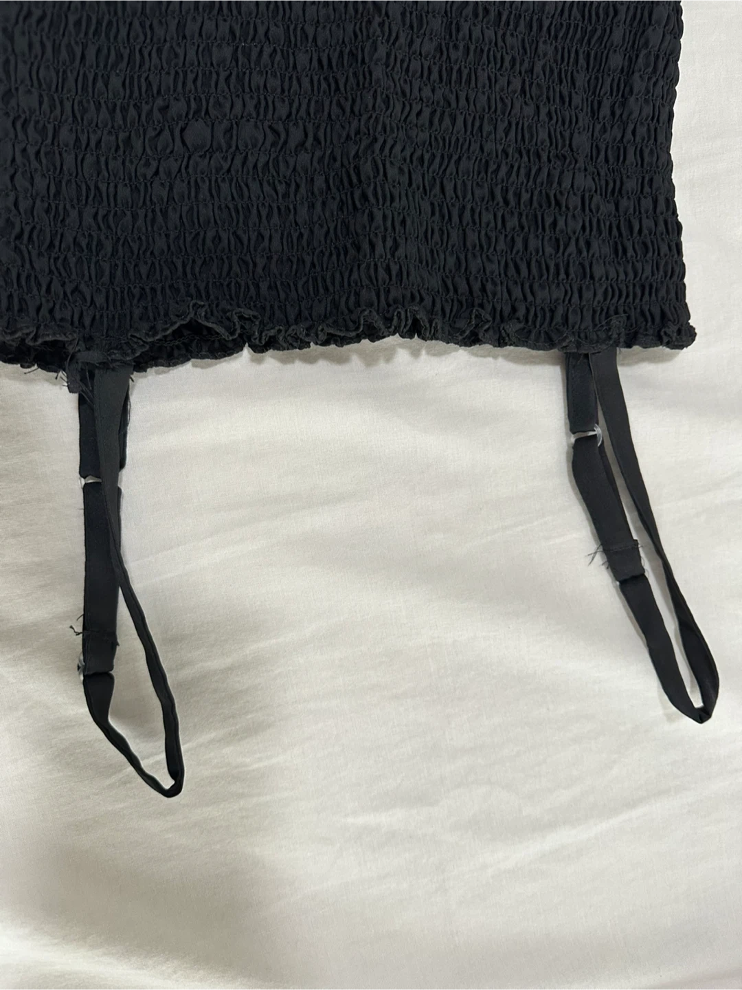 Black Smocked Dress with White Tie-Front Top