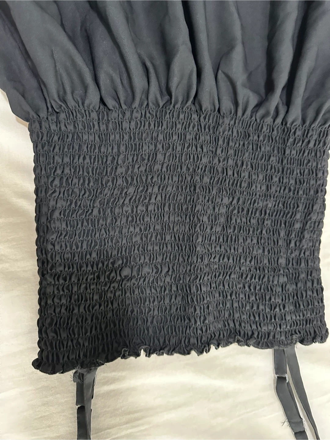 Black Smocked Dress with White Tie-Front Top