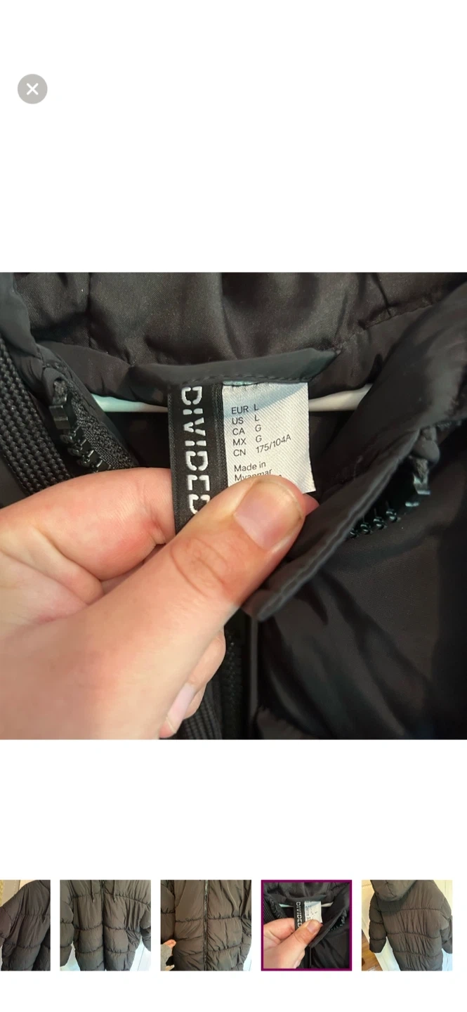 Divided brand for H&M. Knee length zip up puffer winter jacket. Black in colour. Size large. Brand new condition