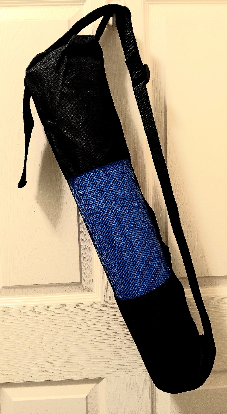 Get ready to find your zen with this blue yoga mat, complete with a carrying case! This mat is in great condition and ready for all your poses, stretches, and meditations.