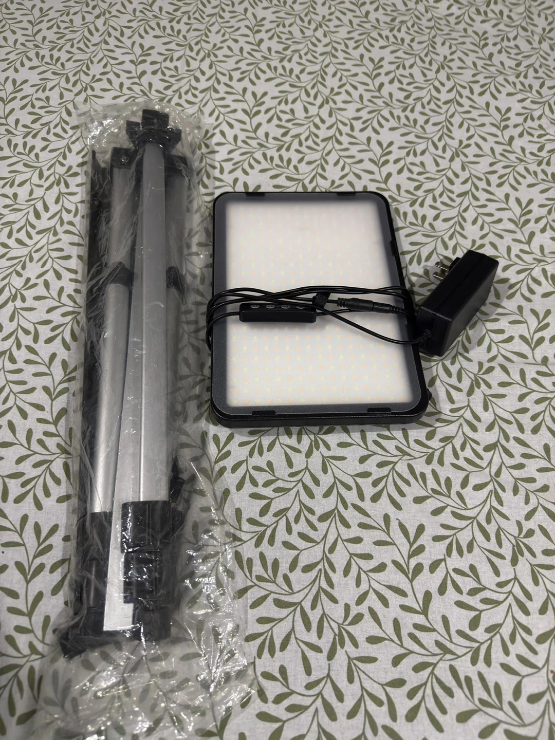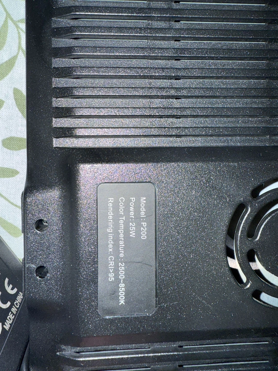 Selling a P200 25W LED light panel. It comes with a tripod and power adapter. The light panel has a colour temperature range of 2500-8500K and a rendering index of CRI>95