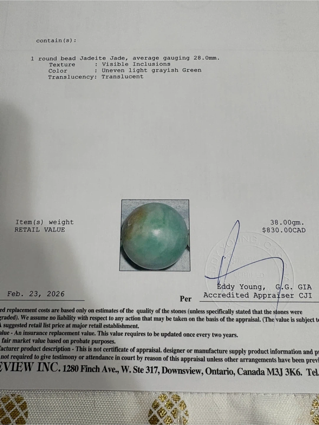 Weight of Jadeite stone - 38 grams