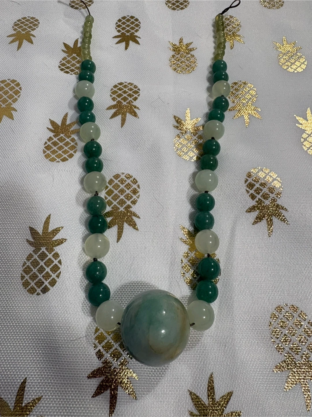 The necklace jadeite piece is just the large round stone. All other stones are quartz.