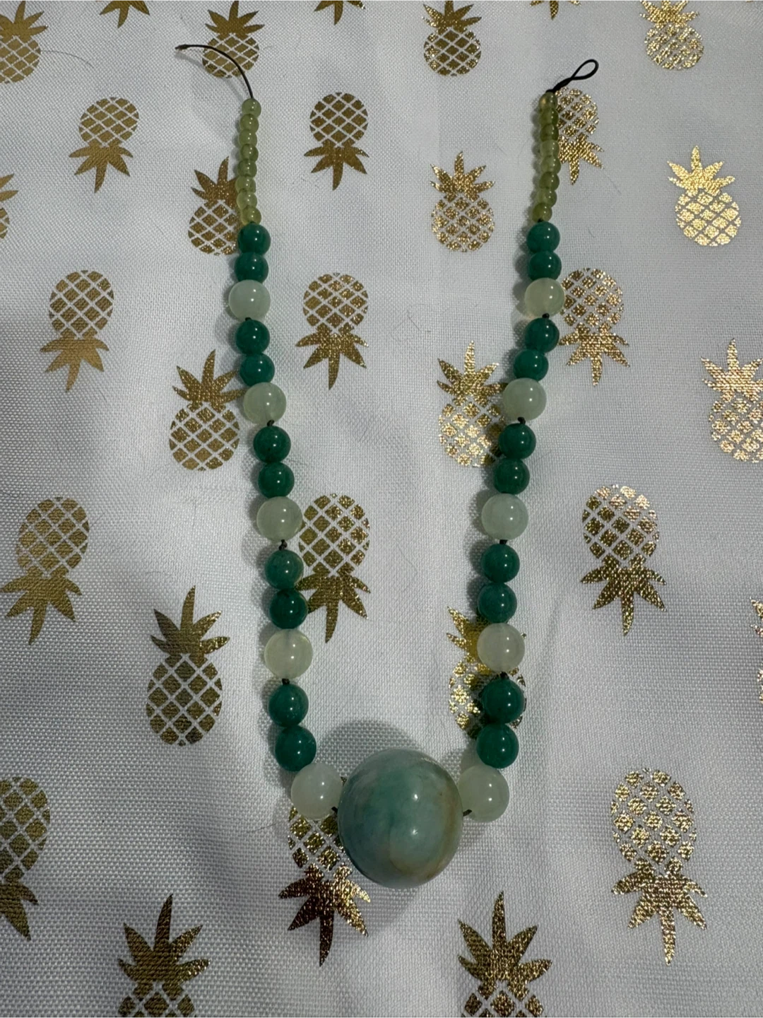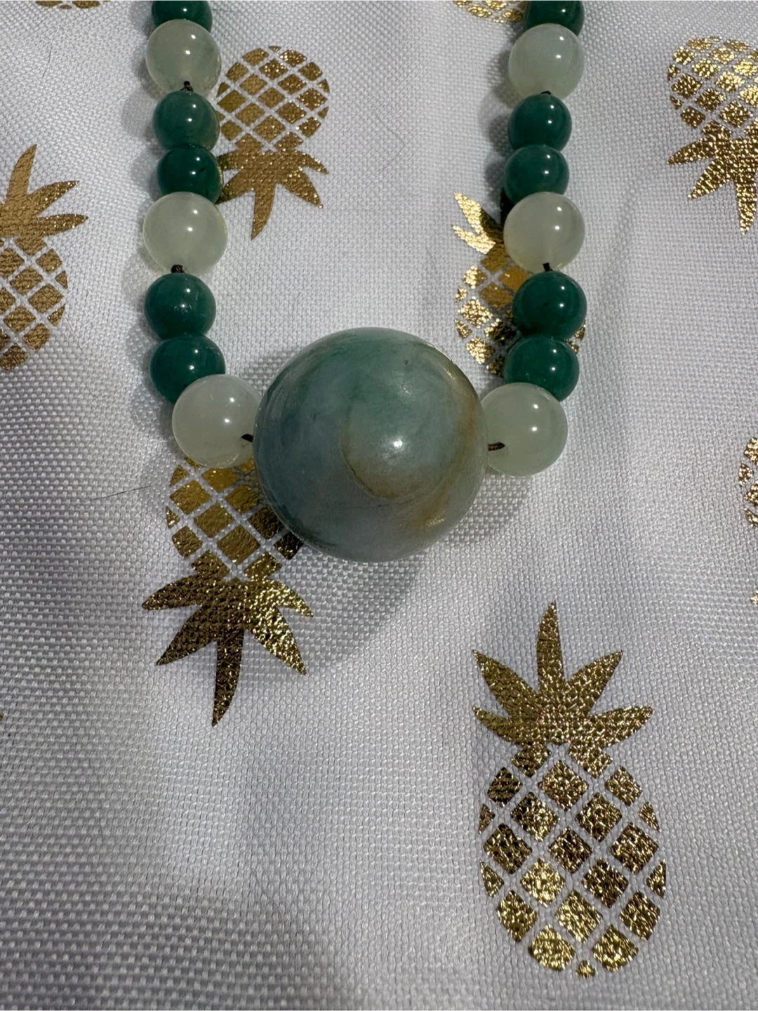 The necklace jadeite piece is just the large round stone. All other stones are quartz.