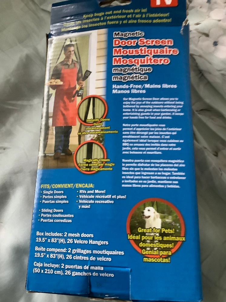 A magnetic screen door that allows you to enjoy the outdoors without being bothered by annoying insects. Great for pets! Also great for entertaining guests in your garden as it keeps your hands free for food and drinks.