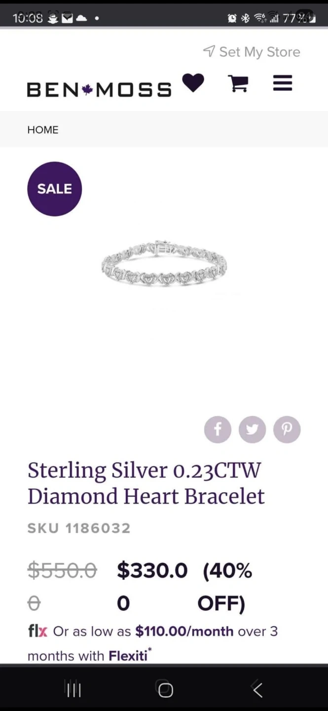 0.23ctw diamond heart bracelet originally priced at $550.00