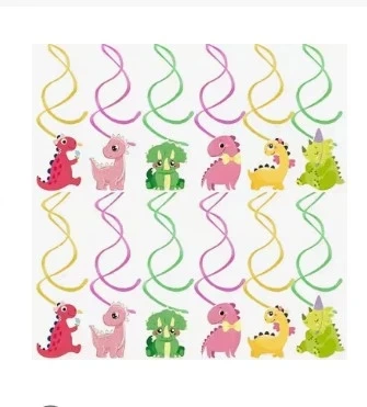 Set of 44 dinosaur hanging swirl decorations for parties. Includes matching dinosaur-themed paper cups there are 51 cups . Perfect for a kid's birthday celebration!