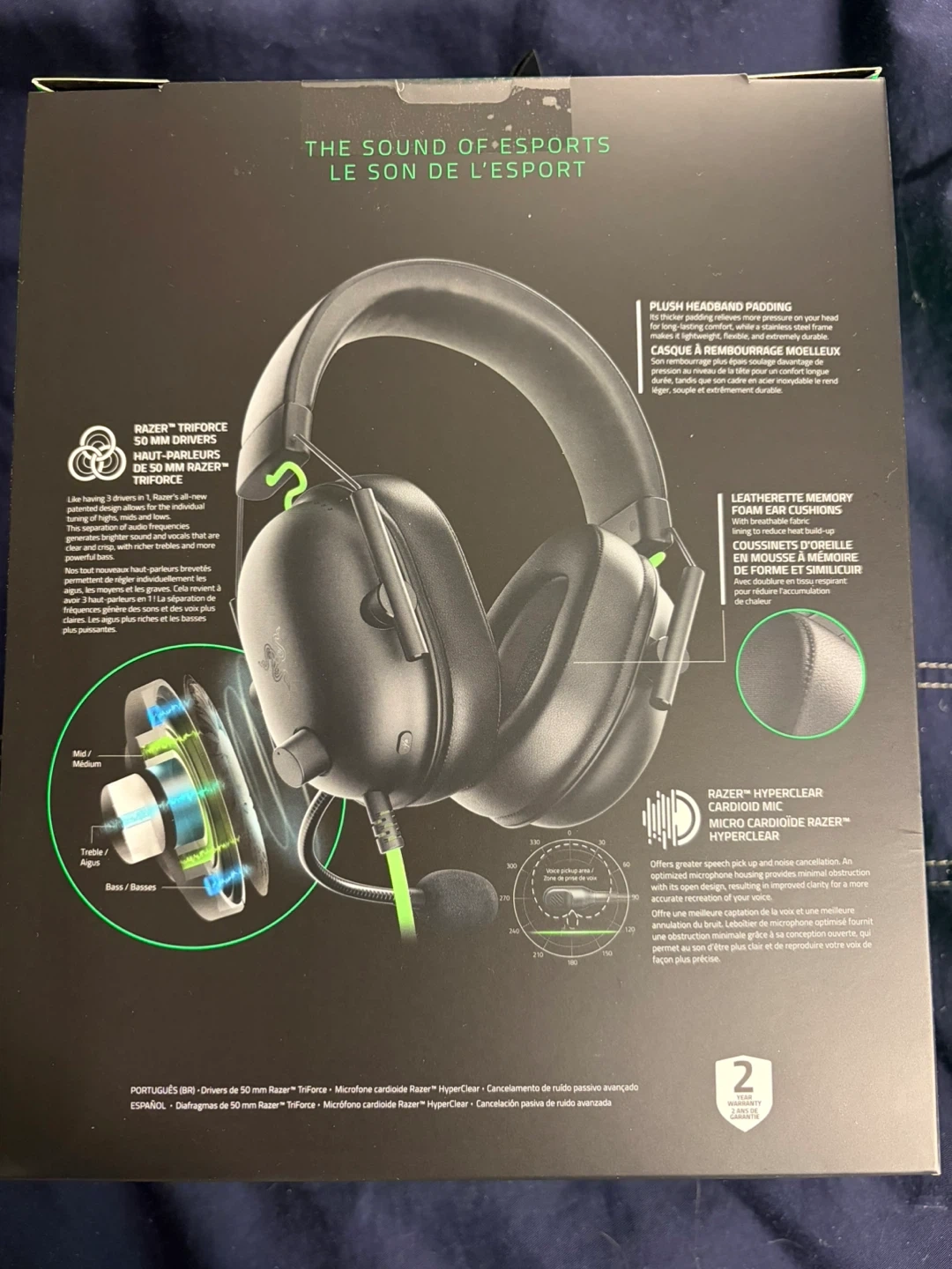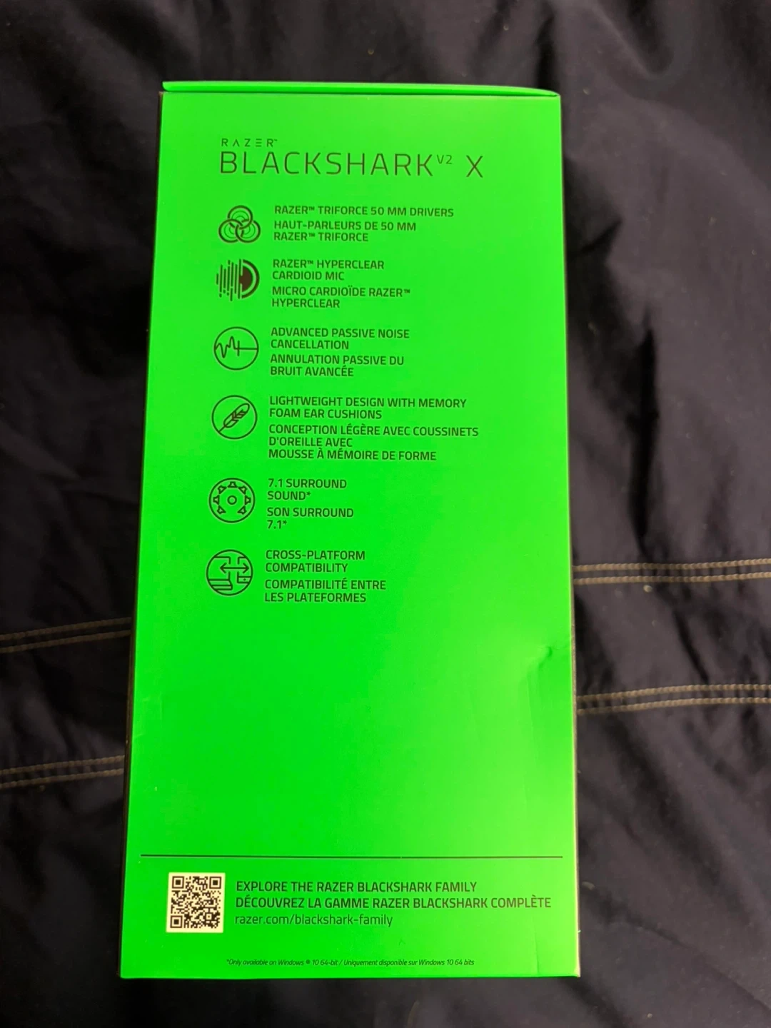 This Razer Blackshark V2 X headset features 50 mm TriForce drivers and a HyperClear cardioid mic for clear audio. It's designed for multi-platform use with advanced passive noise cancellation. Lightweight build with memory foam ear cushions for comfort.