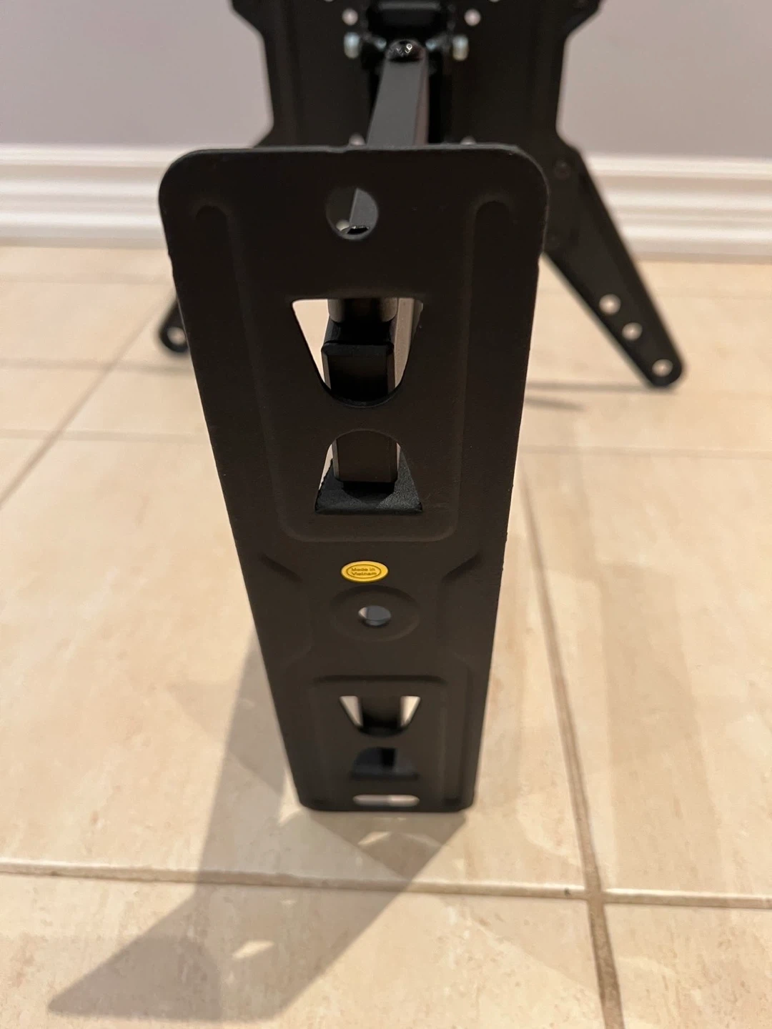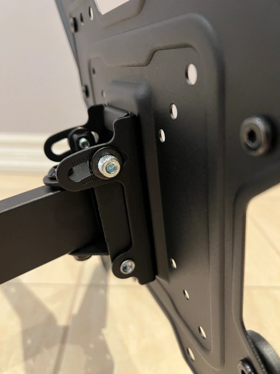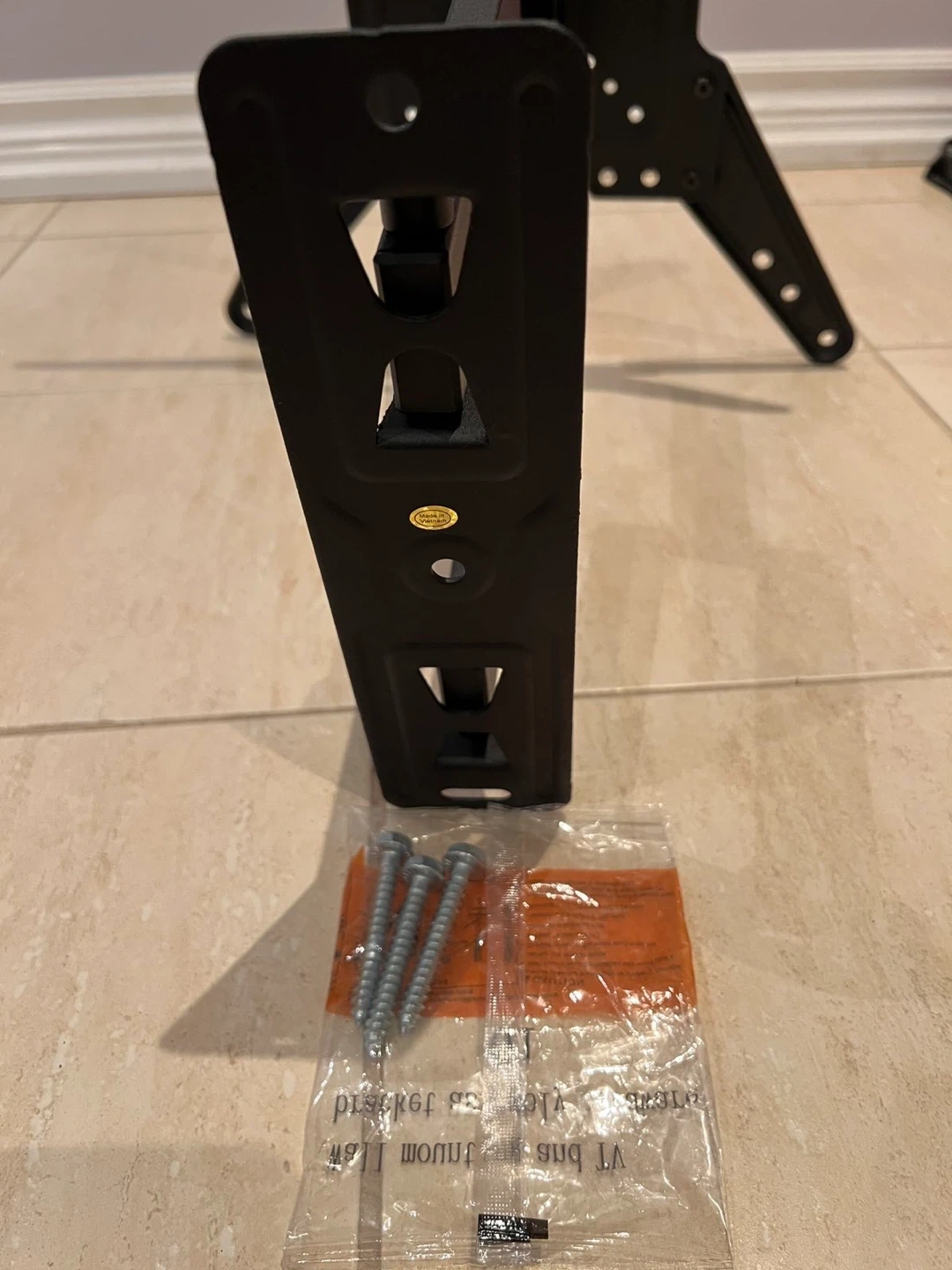 This black TV wall mount is from Mounting Dream. It includes all necessary hardware for installation, conveniently packaged. This mount is suitable for most TVs and offers adjustable positioning.