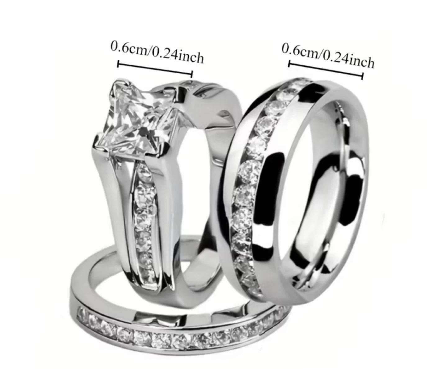 3pcs Elegant Couple Ring Set, Stainless Steel & Zinc Alloy with Zirconia Stones, Suitable for Wedding and Engagement.