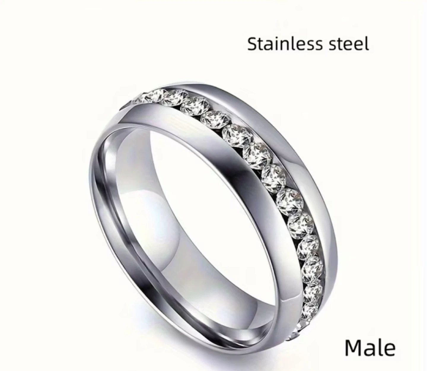 The main ring's band width is 0.24 inch (0.6cm) and the matching band's width is also 0.24 inch (0.6cm). Comes with male matching band.