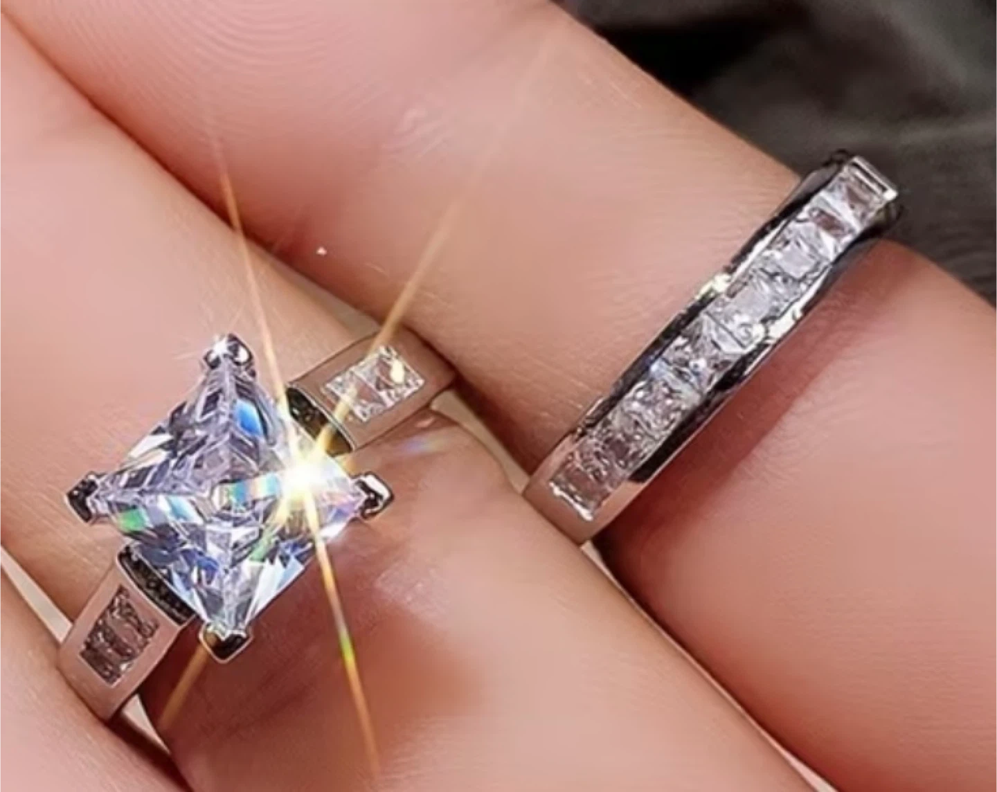 Princess Cut Engagement Ring & band with men’s band