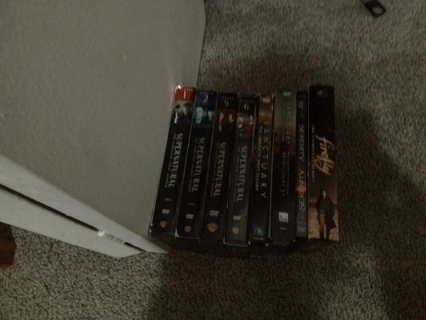 Selling a collection of DVDs including "Independence Day", "Two and a Half Men" complete seasons, "Supernatural" seasons 1-5, "Sanctuary" seasons 1-3, "Firefly" complete series, "Criminal Minds" season 1, "Fringe" seasons 1-5, "True Blood" seasons 1-4, "The Big Bang Theory" complete seasons 1-10, "Zombie" seasons 1-2, "Person of Interest" season 1, "Everybody Loves Raymond" seasons 1-5, "Castle" seasons 1-5, "Eureka" season 1, "Vacation" season 1, "Hot in Cleveland" season 1, "Married" season 1. Includes original boxes for many series.