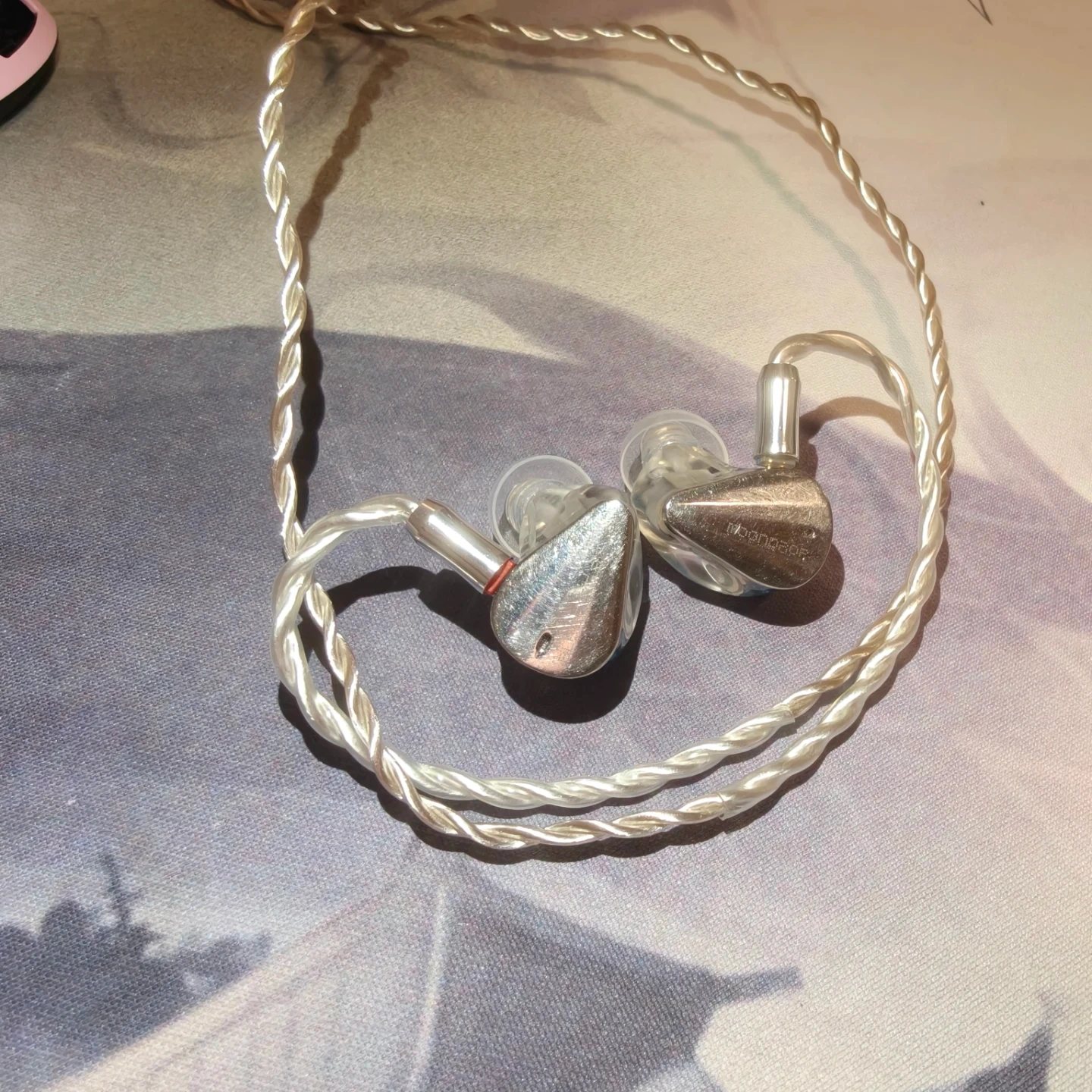 Alot of scratches on both side. It comes with thieaudio est cable 2 pin to 3.5 (can switch to a 4.4mm moondrop cable if you want) and a pair of soft ear eartip. Feel free to ask question