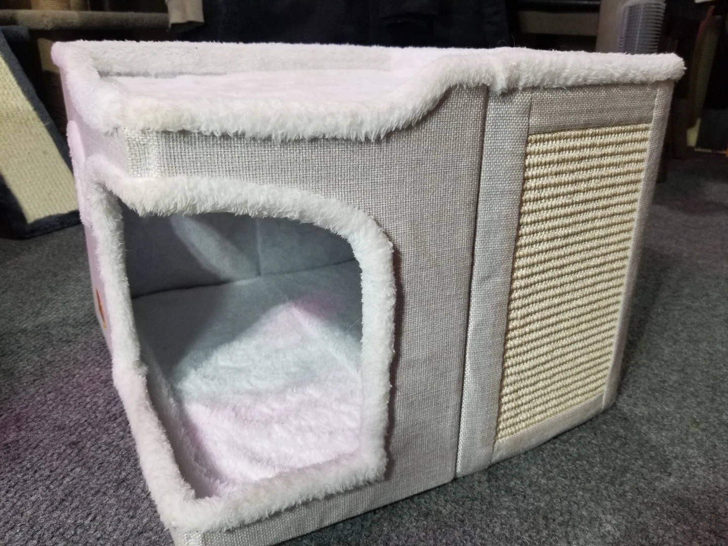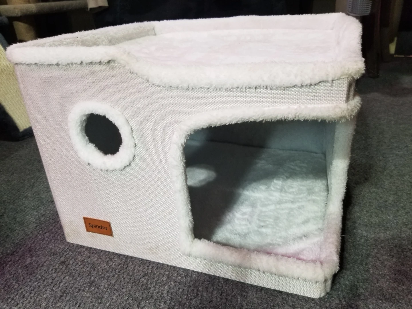 Giving away a carpeted cat tower with a cozy lower level hide away and an elevated upper level for playtime. Also included is a Spindro cat bungalow with a built in sizzle scratch pad on the side. The bungalow is collapsible and features a removable, solid upper platform for optional lounging or playing. Both have lots of life left in them! Pick up only please, near Victoria Park Station. *The tower is very sturdy and well built, but it can be disassembled for moving if necessary.