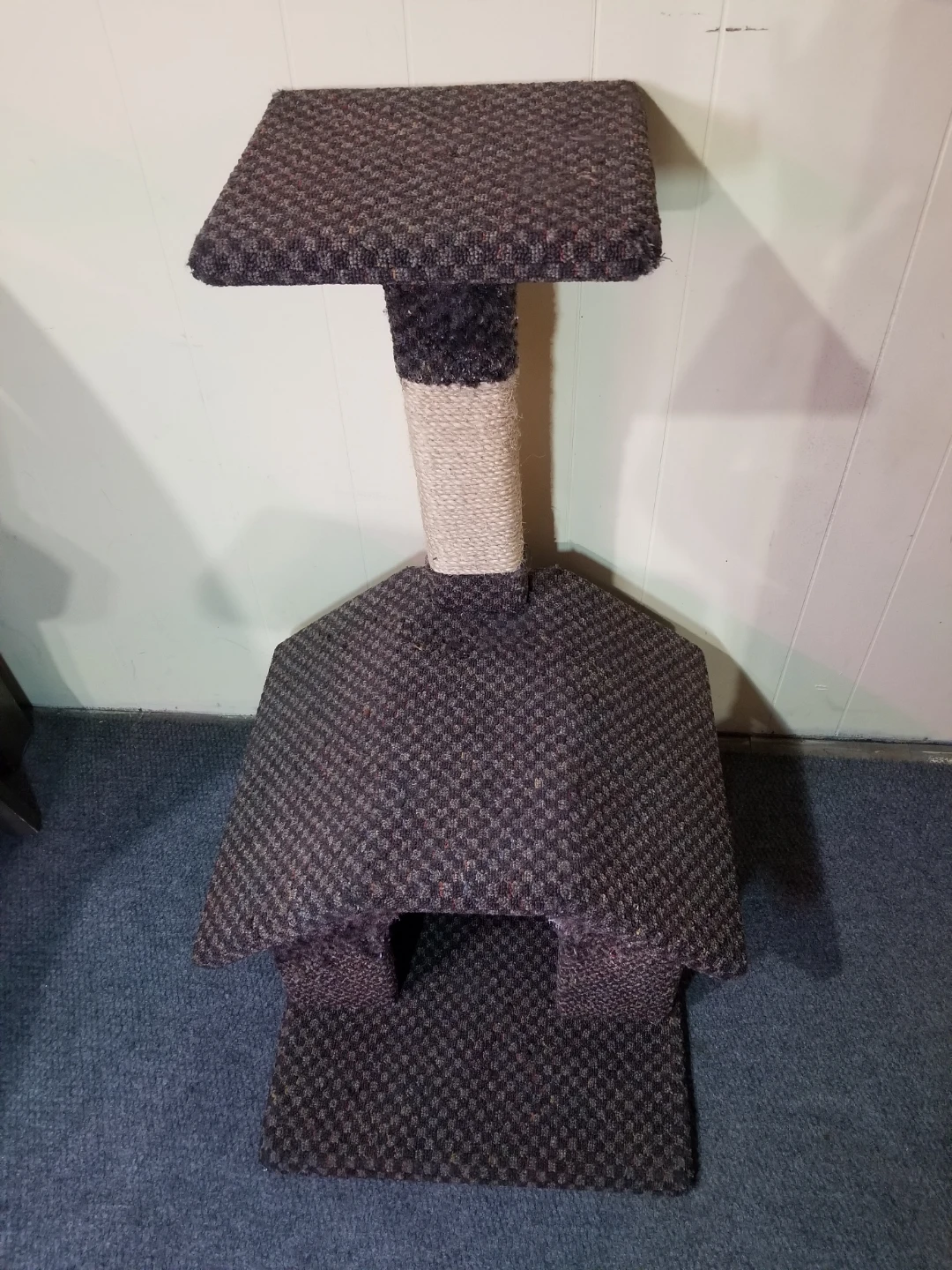 Giving away a carpeted cat tower with a cozy lower level hide away and an elevated upper level for playtime. Also included is a Spindro cat bungalow with a built in sizzle scratch pad on the side. The bungalow is collapsible and features a removable, solid upper platform for optional lounging or playing. Both have lots of life left in them! Pick up only please, near Victoria Park Station. *The tower is very sturdy and well built, but it can be disassembled for moving if necessary.