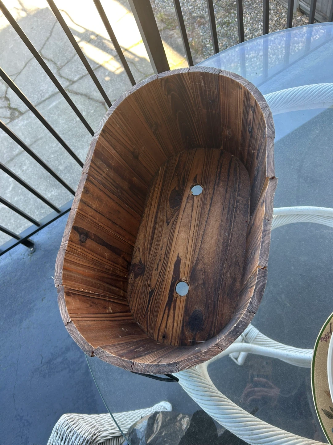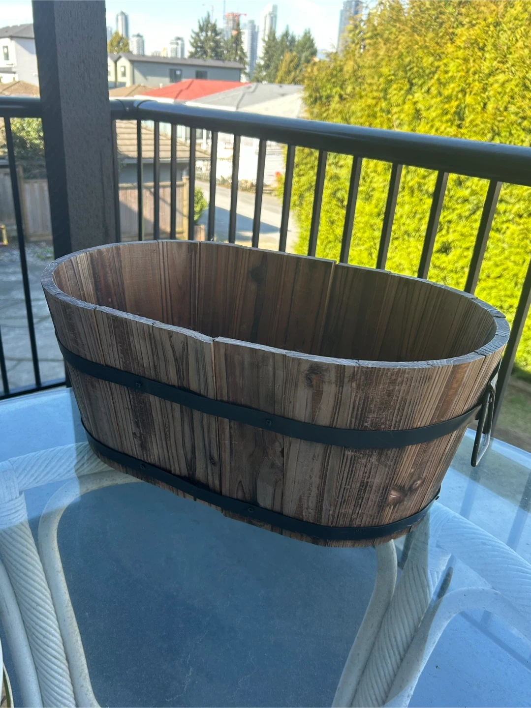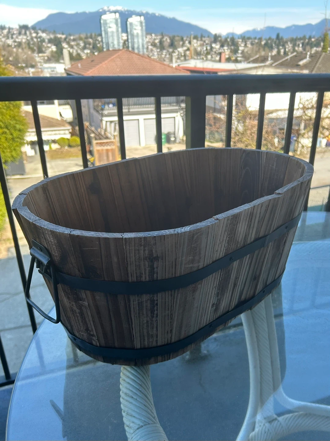 Buy & SellWooden Oval Planter Tub with HandlesWooden Oval Planter Tub with Handles$20Rustic wooden tub planter with metal bands. It's oval shaped and has two handles. The wood has a distressed finish.ConditionGoodWHERE TO MEETCheck LocationView MapSELLERDanBrentwood525 reviews1 chats·3 favorites·33 viewsSEND CHAT TO SELLERHi Dan! I’m interested in your listing.Hi Dan! I’m interested in your listing.Get the Karrot app to chatSign In to chat