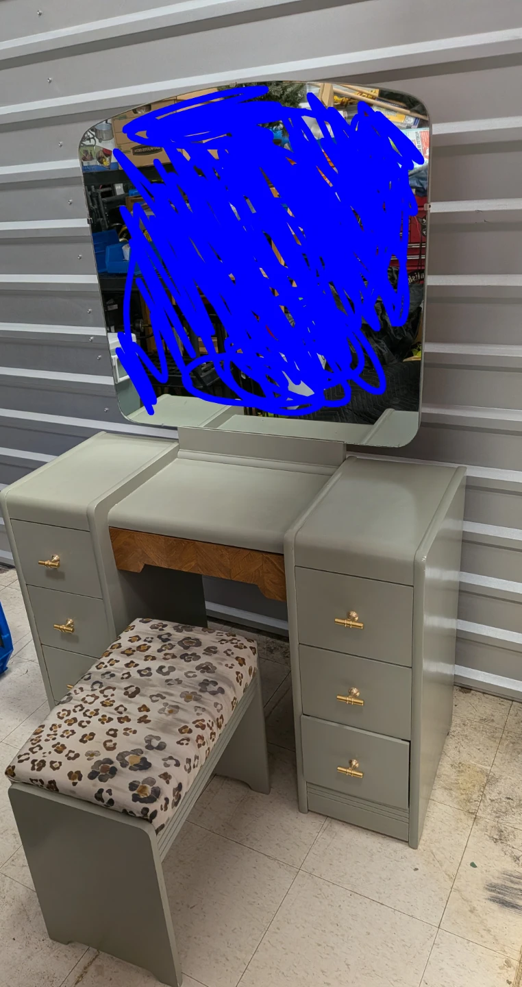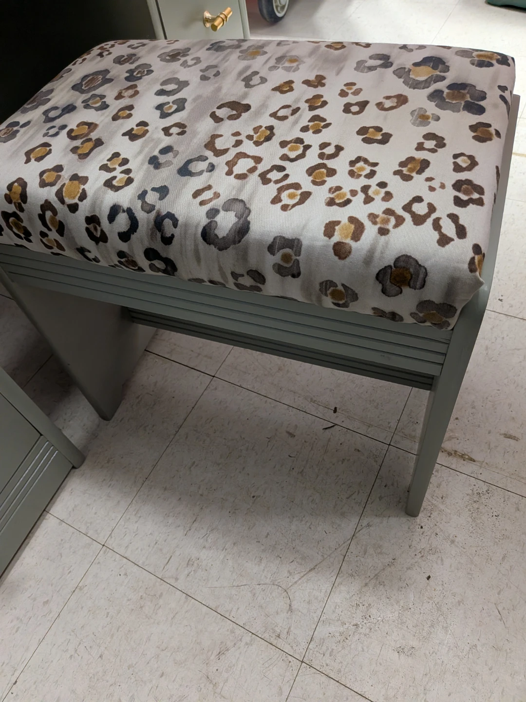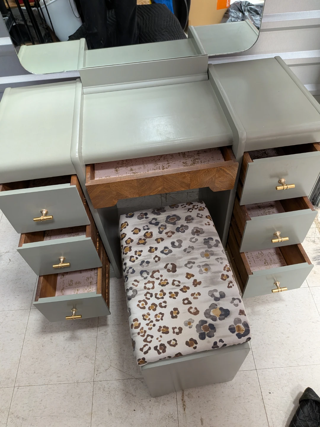 Reconditioned Antique Olive Green Vanity Set with Stool
