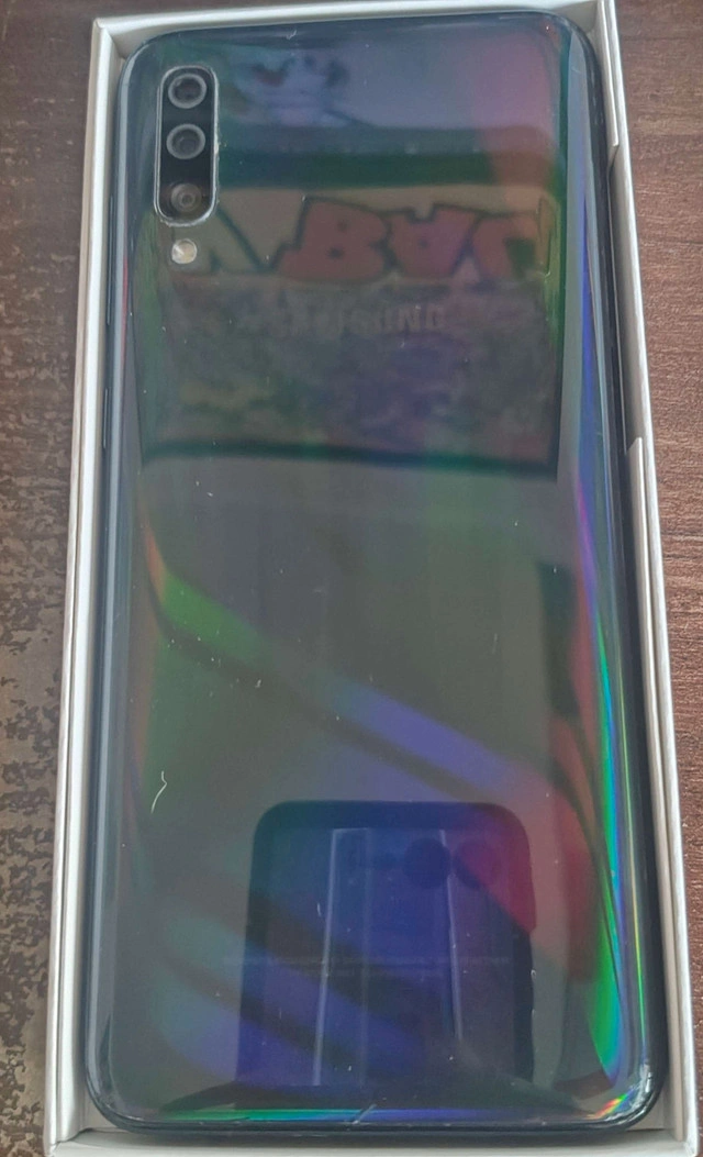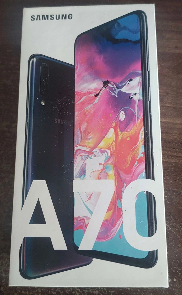 Samsung Galaxy A70 in great condition. -6.7” Super AMOLED Display -128GB Storage / 6GB RAM -Triple Rear Camera (32MP main) + 32MP Front Camera -Fast Charging & Long Battery Life -Fingerprint + Face Unlock -Phone has been fully tested and works perfectly. -Factory reset and ready for a new user. -Can be used with most carriers (unlocked).