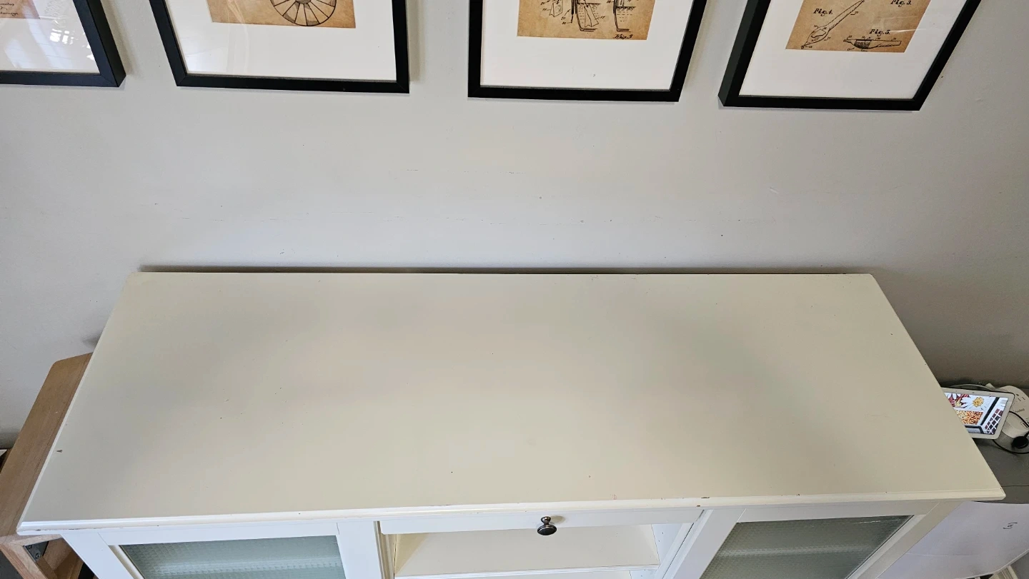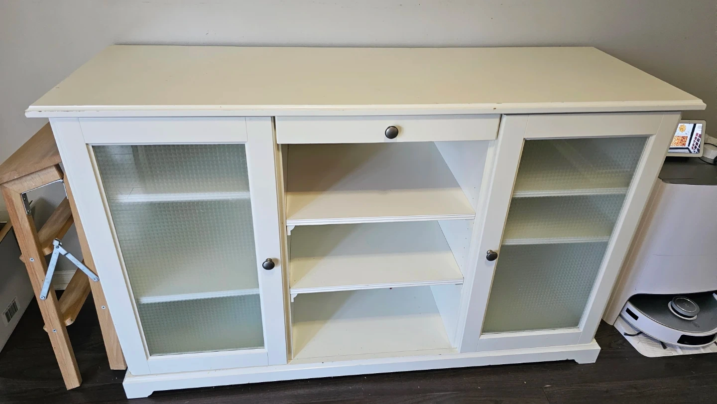 White Media Console Cabinet with Glass Doors and Drawer