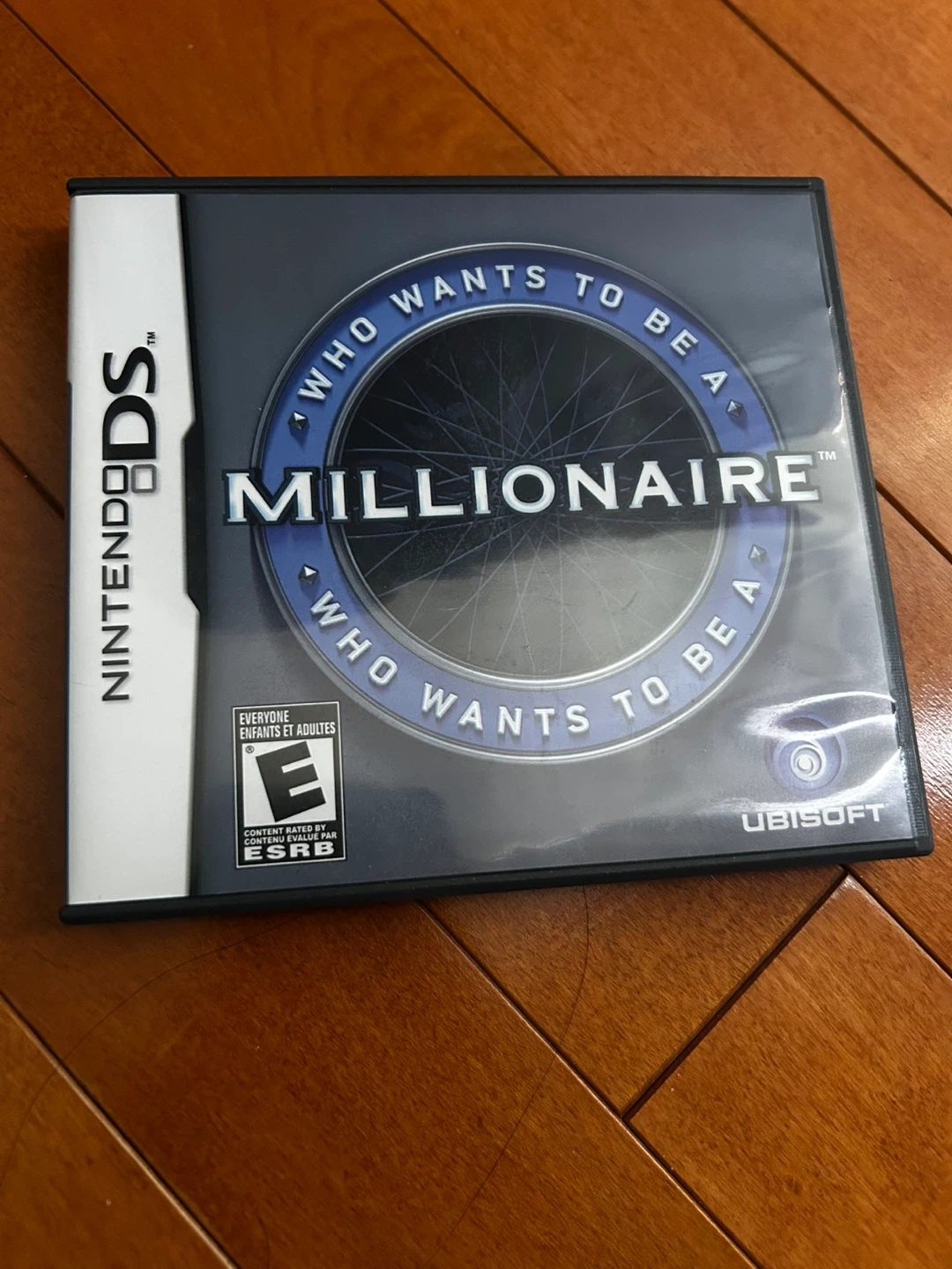 This is the Who Wants to Be a Millionaire video game for the Nintendo DS. It includes the game cartridge and the original case with the manual. It's rated E for Everyone.