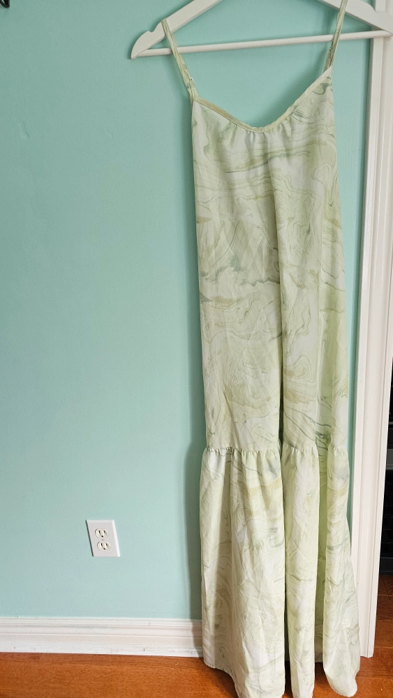 Washed but never worn. A beautiful dress with thin straps. Features a flowy, marbled pattern. Perfect for a stroll on the beach, it will bring tranquility to your day.