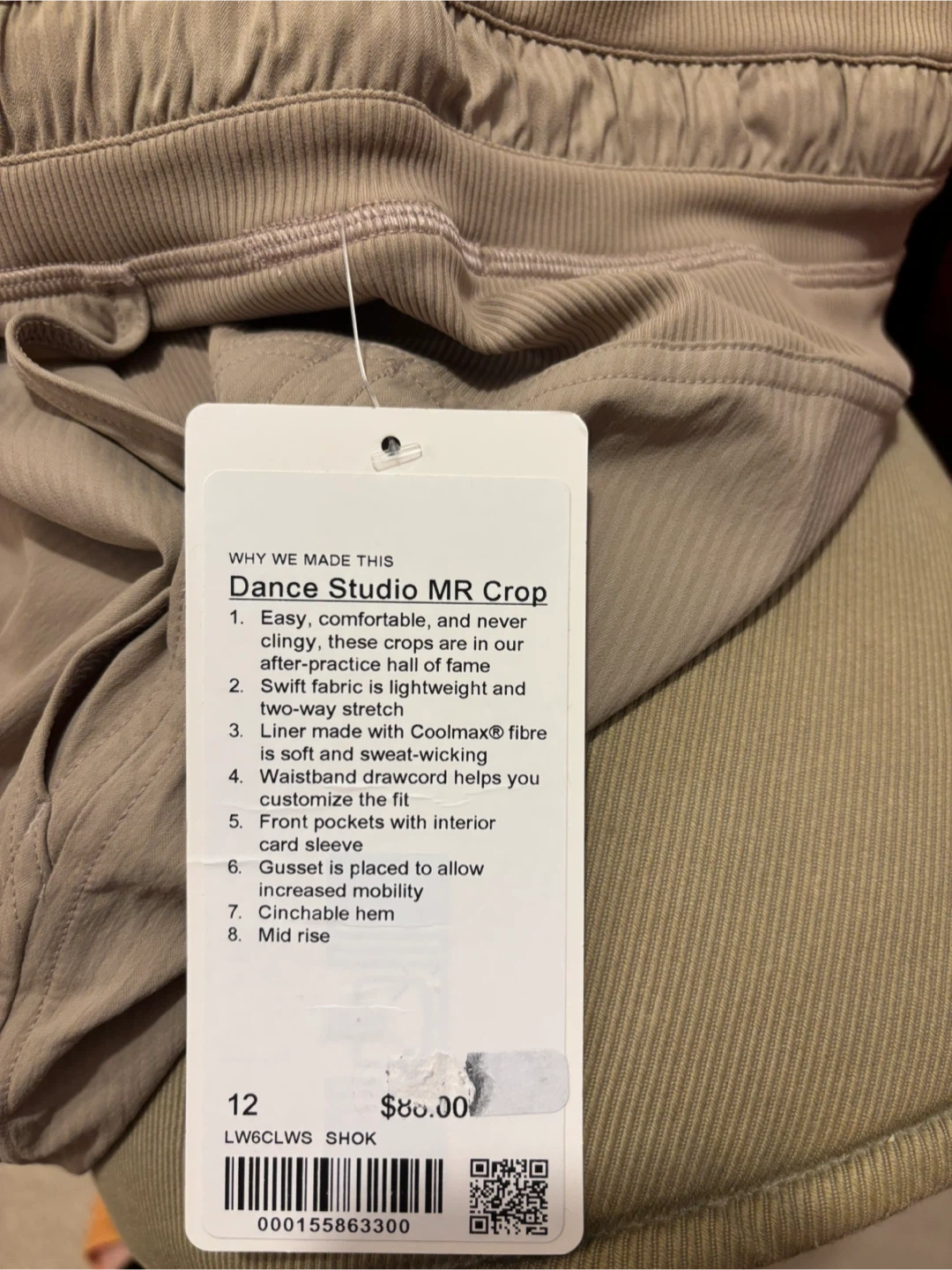 Lululemon Women's Dance Studio MR Crop / Size 12