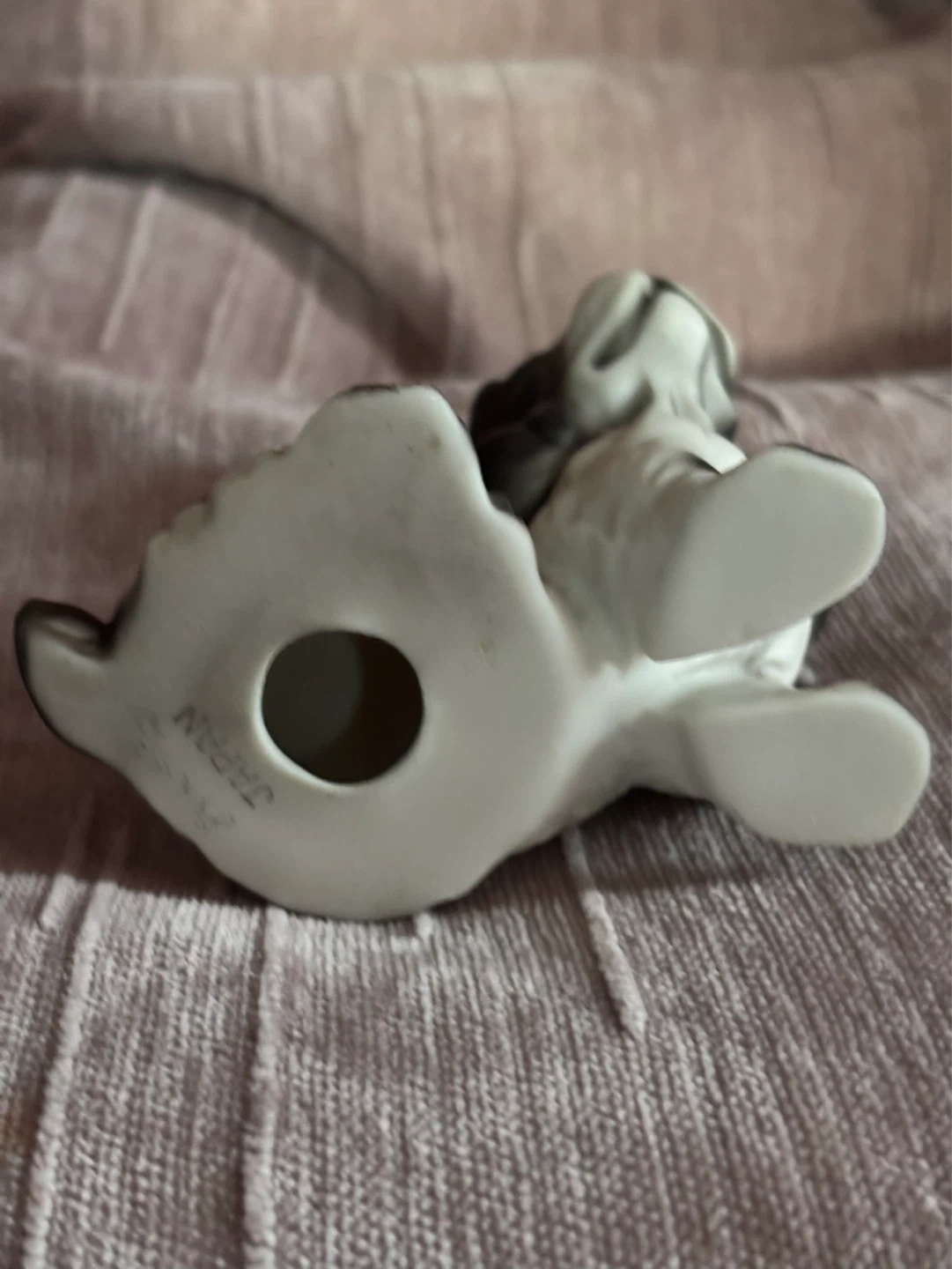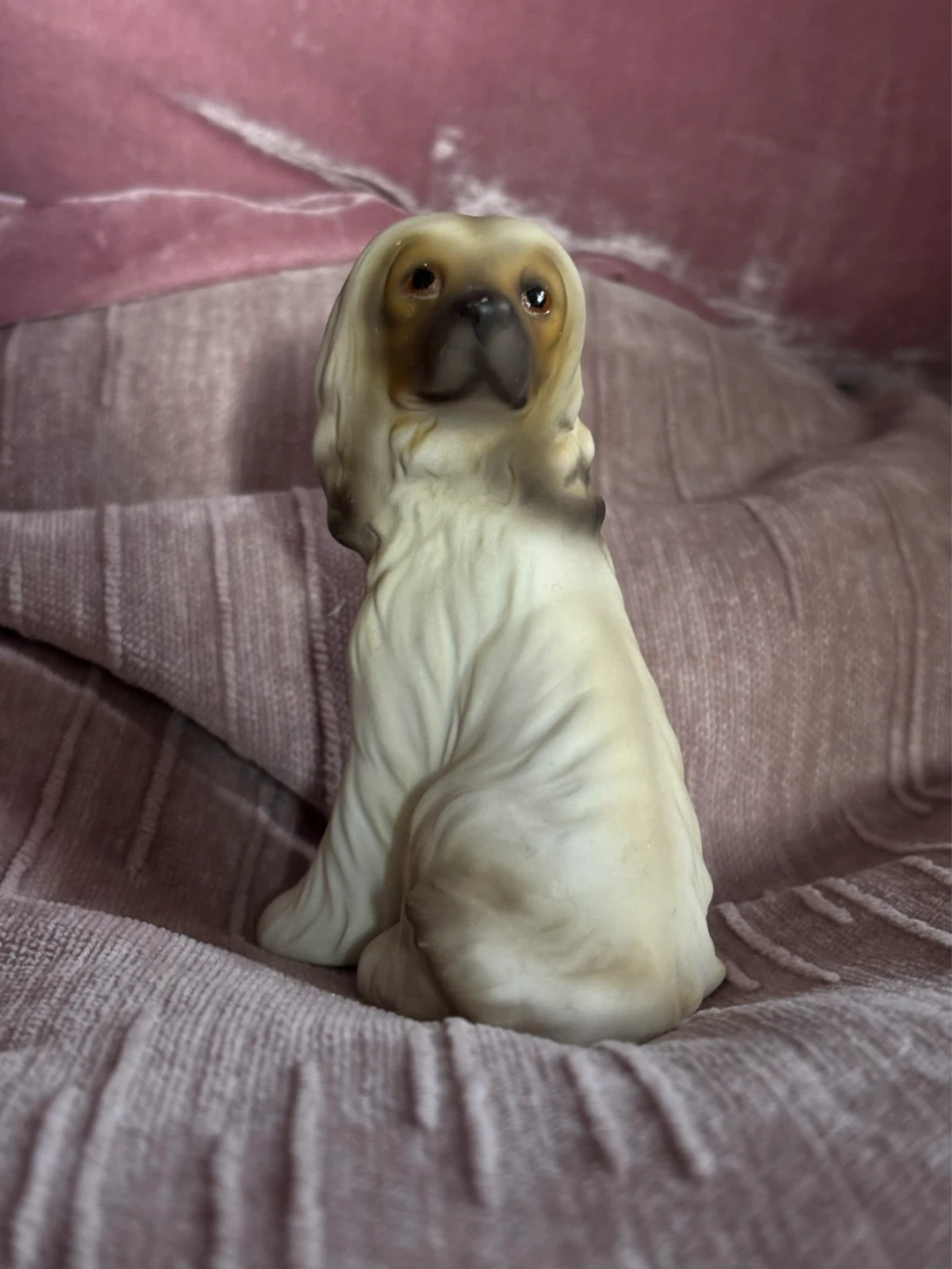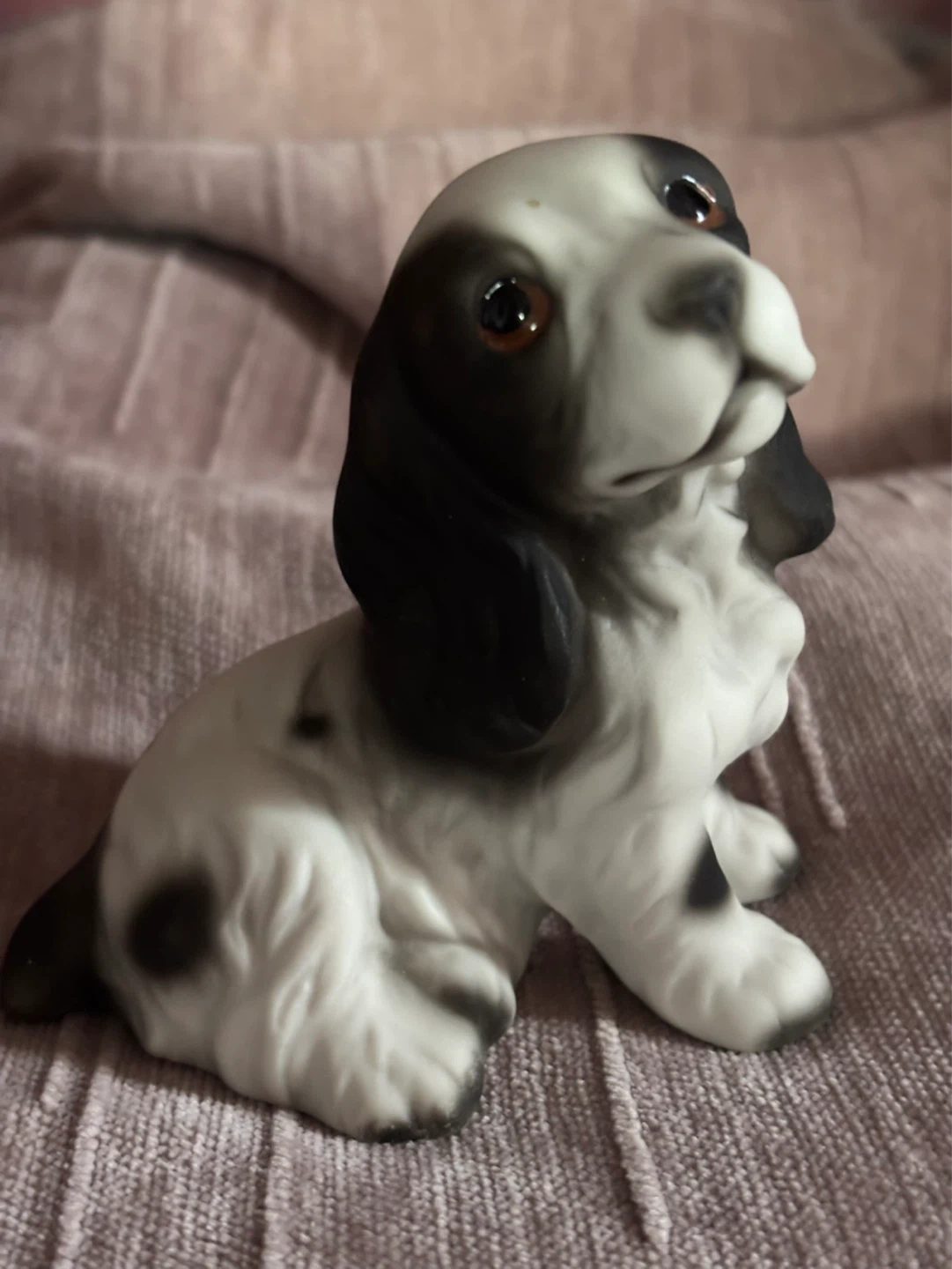 These are charming ceramic dog figurines made in Japan. They have a glazed finish with detailed sculpting. A lovely decorative piece for any dog lover! 4 inches tall
